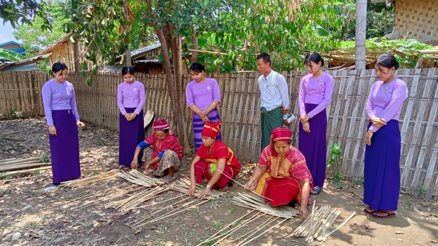 ရခိုင်ပြည်နယ်၊ အမ်းခရိုင်၊ အမ်းမြို့ နယ်အမှတ် (၃)စျေးရပ်ကွက်အောက် ကျင်း၌ တစ်ပိုင်တစ်နိုင် ကုန်ထုတ်လုပ်ငန်းများဆောင်ရွက်နေကြသောအသျှို ချင်းတိုင်းရင်းသူ တိုင်းရင်း သားများရိုးရာ နှီးဝါး ဖြင့်အသုံးအ ဆောင်ပစ္စည်းများတစ်ပိုင်တစ်နိုင်ရက် လုပ်ရောင်းချ နေသူများနှင့်ပြန်ကြား ရေး နှင့် ပြည်သူ့ဆက်ဆံရေး ဦးစီးဌာနနှင့် မြို့နယ်မိခင်နှင့် ကလေးစောင့်ရှောက်ရေး အသင်းဥက္ကဋ္ဌနှင့်အဖွဲ့ယမန် နေ့ညေနအချိန်ကသွား ရောက်တွေ့ဆုံလေ့လာကာ အားပေးစကားများပြောကြားခဲ့ပြီး မေးမြန်းချက်များအရ လုပ်ငန်းများအဆင်ပြေကာအဝယ်လိုက်လျက်ရှိကြောင်း သိရသည်။