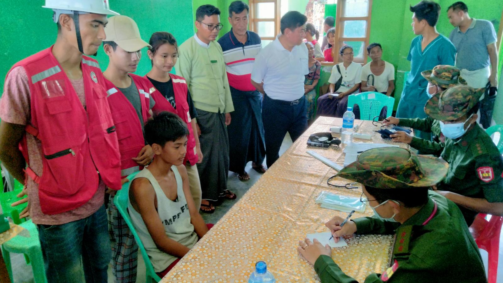 ပထမဦးစွာ ဗိုလ်ချုပ်အောင်မျိုးထွန်းနှင့်အဖွဲ့သည် တပ်မတော်မှရေသန့်ယာဉ်ဖြင့် ထုတ်လုပ်၍ ရသေ့တောင်မြို့ပေါ်ရပ်ကွက်များရှိ ပြည်သူများအား သောက်ရေသန့်ဖြန့်ဝေပေးနေမှု အခြေအနေများ၊ မုန်တိုင်းဒဏ်ကြောင့်ပျက်စီးခဲ့မှုများအား ရှင်းလင်းဆောင်ရွက်နေမှုများကို မြေပြင်ကွင်းဆင်း စစ်ဆေးခဲ့ကြသည်။