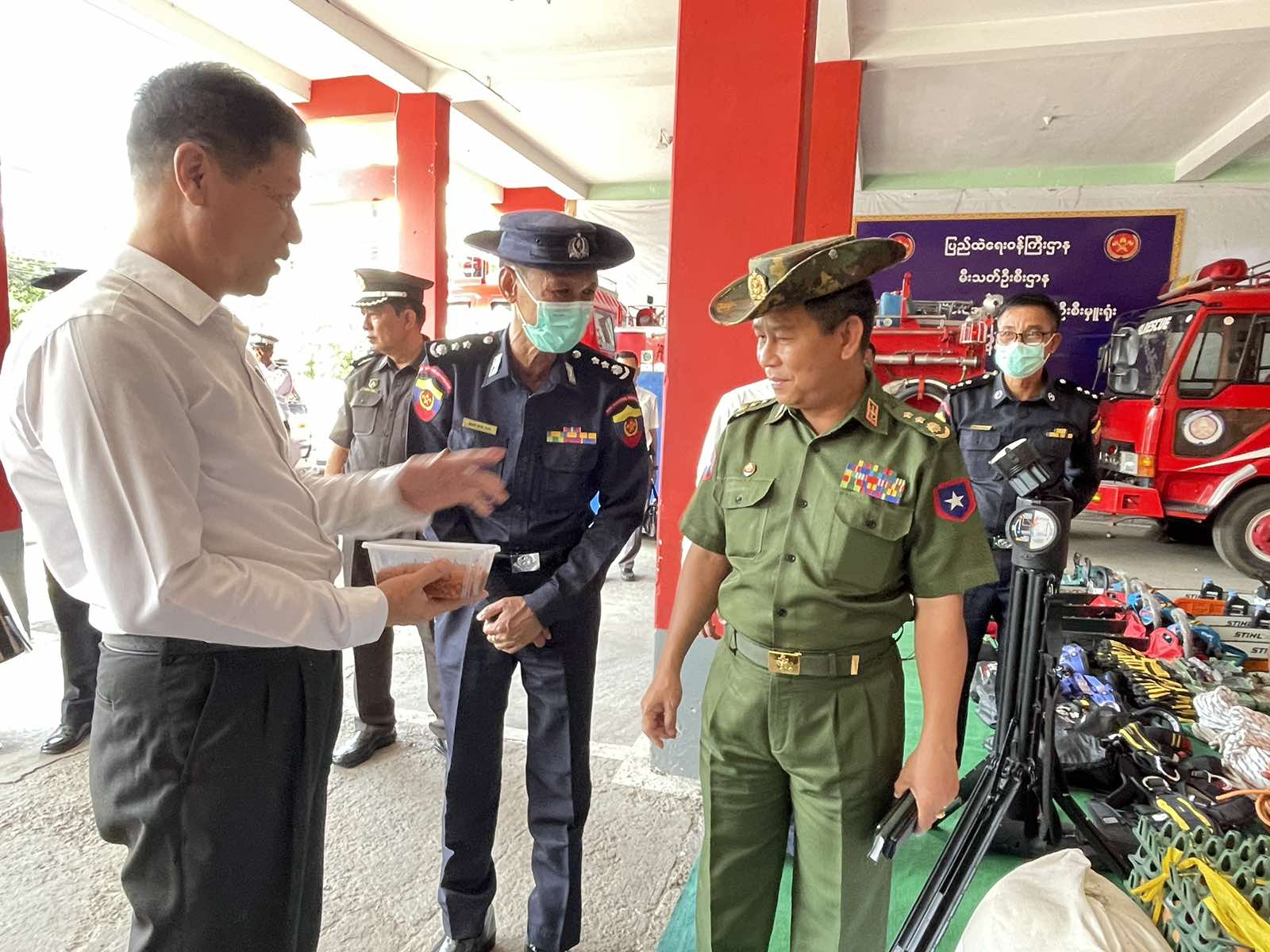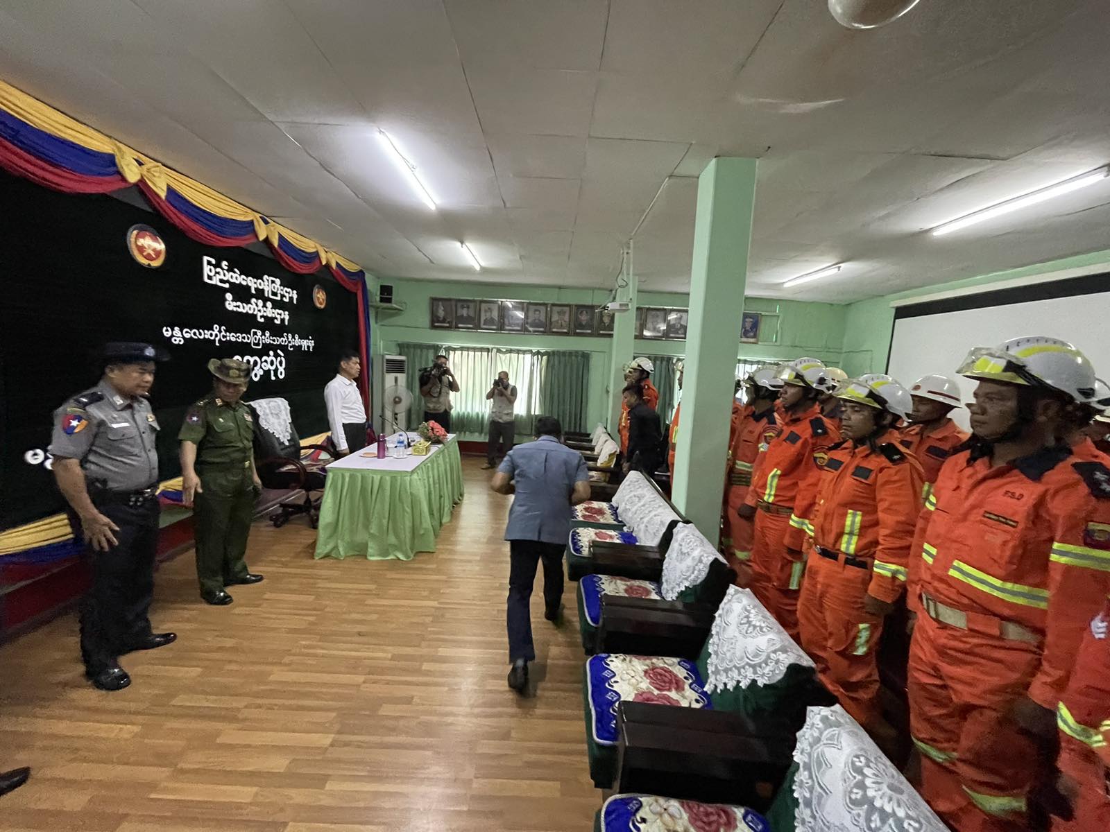အလွန့်အလွန်အားကောင်းသော ဆိုင်ကလုန်းမုန်တိုင်းမိုခါ(MOCHA)ဖြတ်သန်းတိုက်ခတ်မှုကြောင့်ထိခိုက် ပျက်စီးဆုံးရှုံးမှုများ ဖြစ်ပေါ်ခဲ့သော ရခိုင်ပြည်နယ်သို့ ကူညီကယ်ဆယ်ရေးနှင့် ပြန်လည်ထူထောင်ရေးလုပ်ငန်းများတွင် သွားရောက်ဆောင်ရွက်ကြမည့် မန္တလေးတိုင်းဒေသကြီး မီးသတ်ဦးစီးဌာနမှ ရှာဖွေကယ်ဆယ်ရေး အဖွဲ့ ဝင်များအား မေလ ၂၀ ရက်နေ့ညနေပိုင်းက မန္တလေးတိုင်းဒေသကြီး အစိုးရအဖွဲ့ဝန်ကြီးချုပ် ဦးမျိုးအောင် တိုင်းဒေသကြီးအစိုးရအဖွဲ့ဝင်ဝန်ကြီးများနှင့် တာဝန်ရှိသူများက သွားရောက်တွေ့ဆုံ အားပေးနှုတ်ဆက်ခဲ့ကြ သည်။