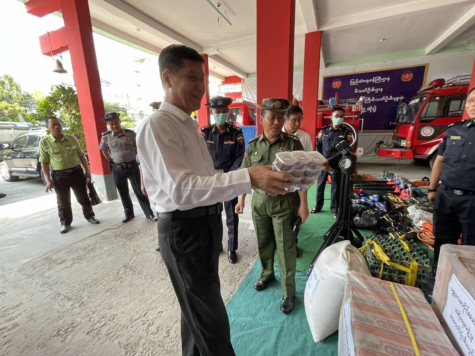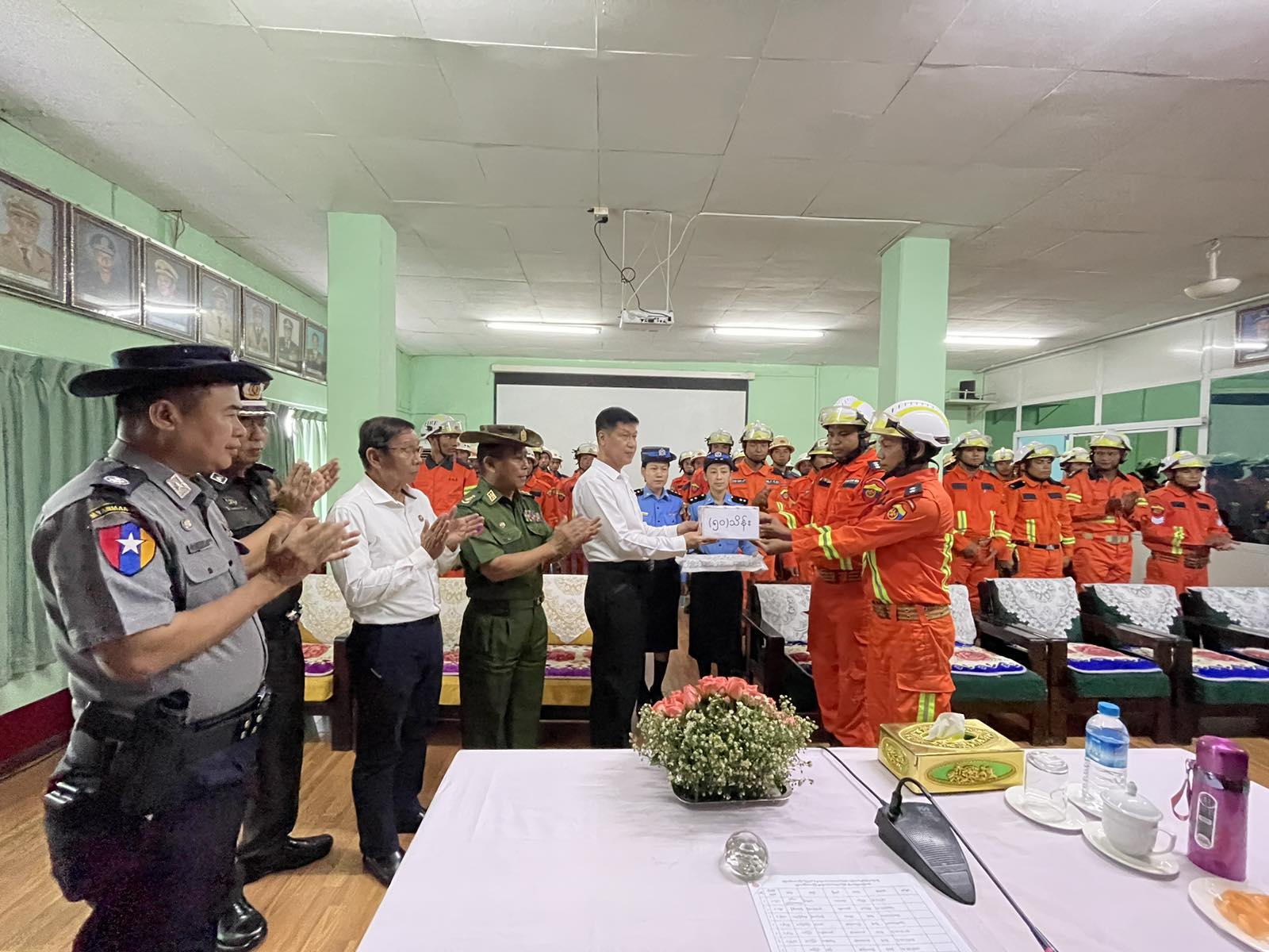 ထိုသို့တွေ့ဆုံစဉ် တိုင်းဒေသကြီးဝန်ကြီးချုပ်က အားပေးစကားများပြောကြား၌ ရခိုင်ပြည်နယ်သို့သွားရောက်၍ ကူညီကယ်ဆယ်ရေးနှင့်ပြန်လည်ထူထောင်ရေးလုပ်ငန်းများဆောင်ရွက်ကြသည့်အခါ တာဝန်ကျရာနေရာများ၌ ပေးအပ်သည့်တာဝန်များကို စေတနာအပြည့်ဖြင့် ကျေပွန်စွာ ထမ်းဆောင်ကြရမည်ဖြစ်ပါကြောင်း၊ ရှာဖွေကယ်ဆယ်ရေးအထောက်အကူပြုစက်ကိရိယာပစ္စည်းများကိုဂရုတစိုက်ဖြင့် စနစ် တကျကိုင်တွယ်အသုံးပြု ဆောင်ရွက်သွားကြရမည်ဖြစ်ပါကြောင်း ပြောကြားပြီးနောက် တိုင်းဒေသကြီးအစိုးရအဖွဲ့မှပေးအပ်သည့် ထောက်ပံ့ငွေကျပ်(၅၀)သိန်းနှင့် စားသောက်ဖွယ်ရာများကိုပေးအပ်၍ နှုတ်ဆက်အားပေးစကားများ ပြောကြားကာ ယူဆောင်သွားမည့် ရှာဖွေကယ်ဆယ်ရေး အထောက်အကူပြုပစ္စည်းများနှင့် စားရေရိက္ခာများကိုလိုက်လံကြည့်ရှုပြီး လိုအပ်သည်များကို ဖြည့်ဆည်းဆောင်ရွက်ပေးခဲ့ကြောင်းသိရသည်။