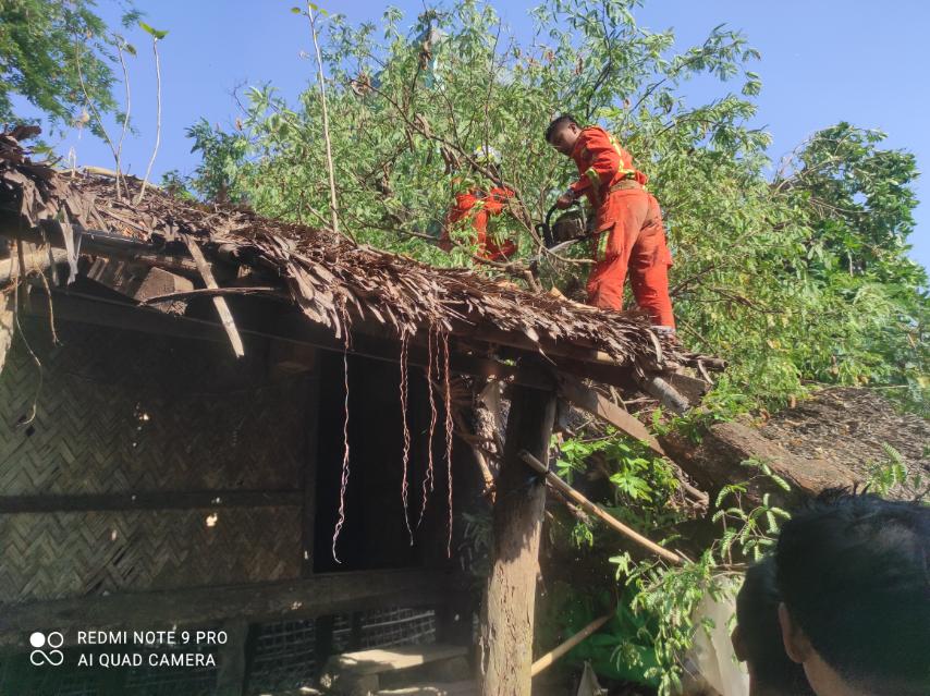 ရခိုင်ပြည်နယ်၊ မြောက်ဦးခရိုင်၊ မင်းပြားမြို့နယ်တွင် မိုခါမုန်တိုင်းလေပြင်းတိုက်ခတ်မှုကြောင့် ပိမိနေသော သစ်ပင်သစ်ကိုင်းများအား ဘေး အန္တရာယ်ကျရောက်ပြီးနောက် ဆက်လက် ဖယ်ရှားလျက်ရှိရာ ယနေ့နံနက်ကစျေးဟောင်းပိုင်းရပ်ကွက်၌ ရှင်းလင်းခဲ့ကြောင်း သိရသည်။