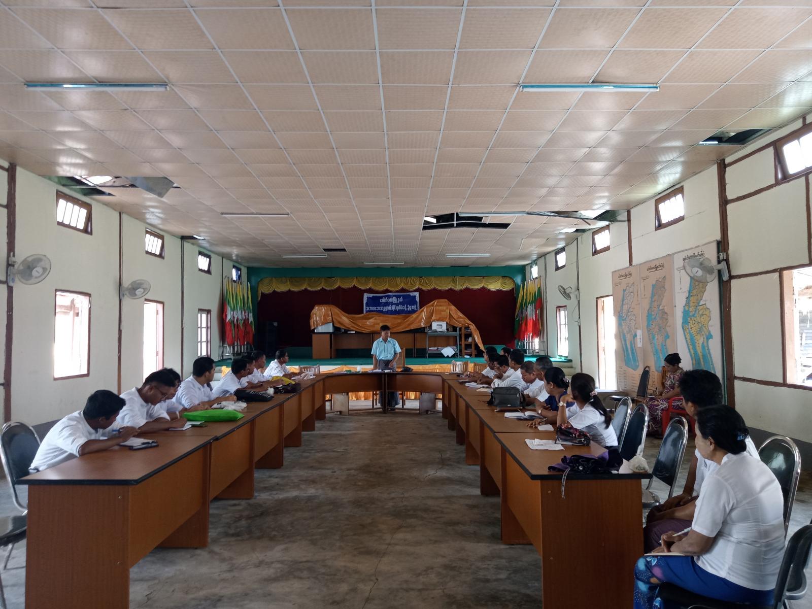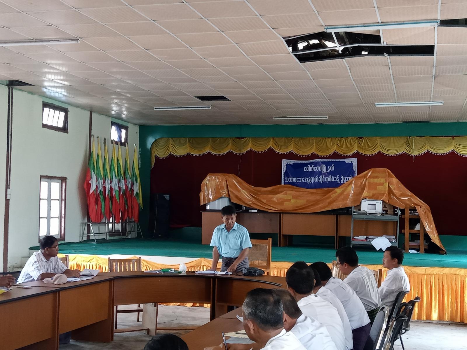ရခိုင်ပြည်နယ်၊ စစ်တွေခရိုင်၊ ပေါက်တောမြို့၌ မိုခါဆိုင်ကလုန်းမုန်တိုင်းကြောင့် ပျက်စီးဆုံးရှုံးခဲ့မှု ကိစ္စနှင့်ပတ်သက်၍ လုပ်ငန်းညှိနှိုင်းအစည်းအဝေးကို မြို့နယ်အထွေထွေအုပ်ချုပ်ရေးဦးစီးဌာန Command Post အစည်းအဝေးခန်းမတွင် ယမန်နေ့ နံနက်(၁၀)နာရီအချိန်က ပြုလုပ်သည်။