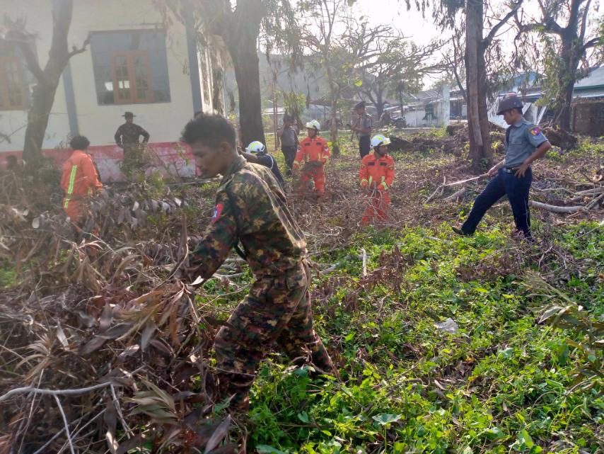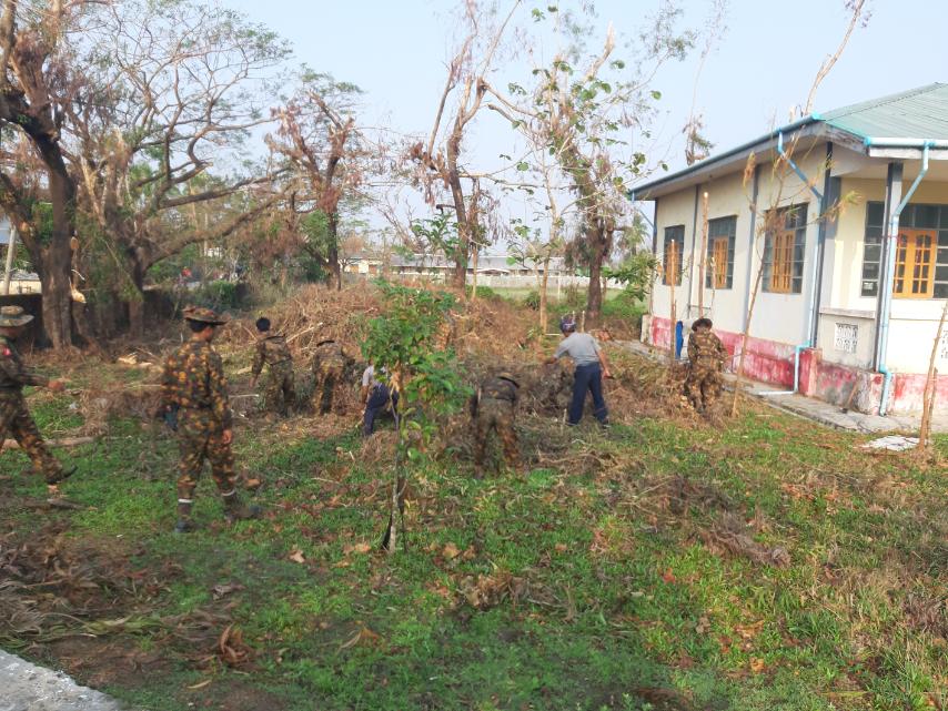 ရခိုင်ပြည်နယ်၊ ပုဏ္ဏားကျွန်းမြို့၌ အခြေခံပညာကျောင်းများတွင် မိုခါဆိုင်ကလုန်းမုန်တိုင်းကြောင့် ပြိုပျက်သွားသည့် အဆောက်အဉီးများနှင့် ကျိုးကျနေသည့် သစ်ပင်၊ သစ်ကိုင်းများအား ခုတ်ထွင်ရှင်းလင်းခြင်းကို ယနေ့နံနက်ပိုင်းက နယ်မြေခံတပ်မတော်သားများ၊ မြန်မာနိုင်ငံရဲတပ်ဖွဲ့ဝင်များနှင့် မီးသတ်တပ်ဖွဲ့ဝင်များ ပူးပေါင်းဆောင်ရွက်ခဲ့ကြသည်။