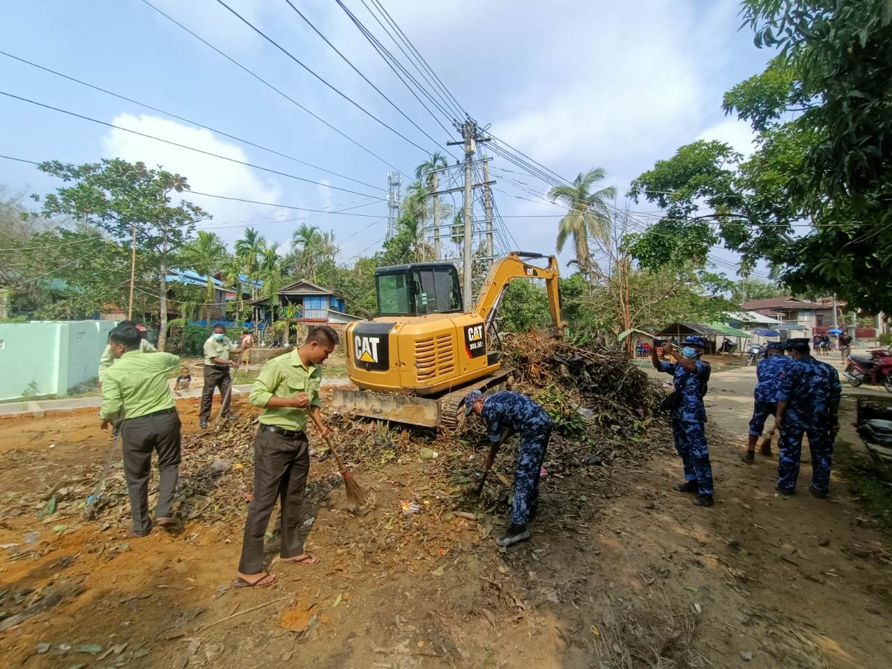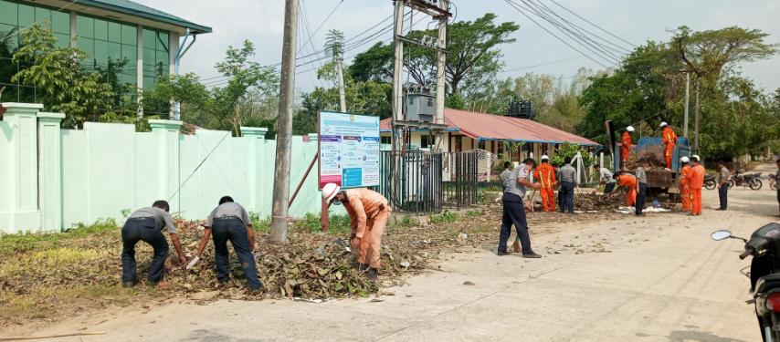 ဆောင်ရွက်ရာတွင် မြို့နယ်အထွေထွေအုပ်ချုပ်ရေးဦးစီးဌာန ဝန်ထမ်းများ၊ တပ်ရင်းတပ်ဖွဲ့ဝင်များ ၊မြို့နယ်စည်ပင်သာယာရေးအဖွဲ့များ၊ မီးသတ်တပ်ဖွဲ့ဝင်များ၊ ရဲတပ်ဖွဲ့ဝင်များစုစုပေါင်း( ၁၅၀)ဦးခန့်ပူးပေါင်း၍ ပိတ်မိနေသော သစ်ပင်သစ်ကိုင်းများ၊ အမှိုက်များ၊ သင်းဝင်ကိုင်း၊ ခမောင်း၊ ဗန်ဒါပင်များအား အမှိုက်သိမ်းယာဉ်များဖြင့် စနစ်တကျစွန့်ပစ်ခဲ့ကြသည်။