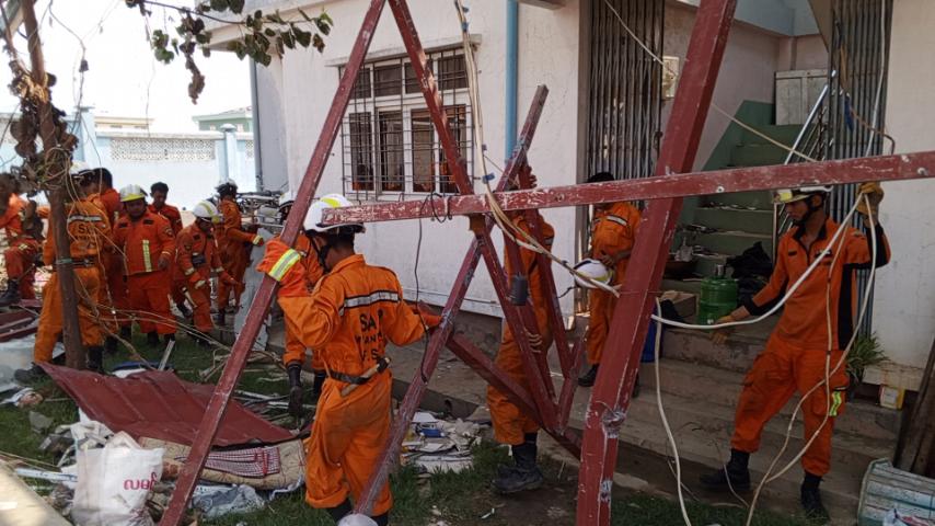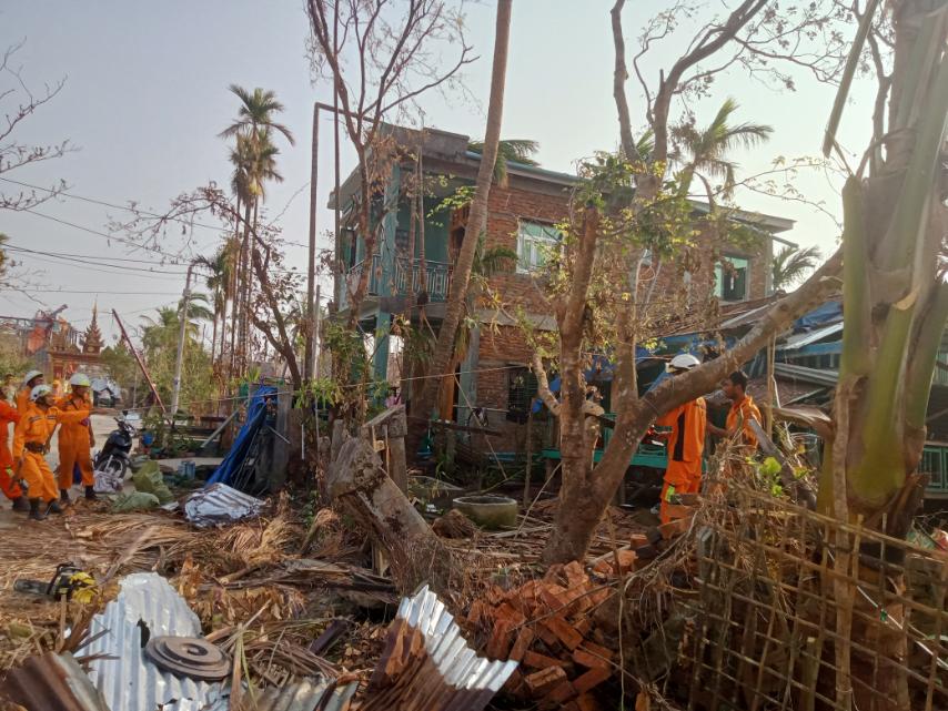 ရခိုင်ပြည်နယ်၊ စစ်တွေခရိုင်၊ ရသေ့တောင်မြို့၌ မိုခါမုန်တိုင်းမှာအားအလွန်ပြင်းသဖြင့်ထိခိုက်ပျက်စီးမှုများခဲ့သောကြောင့် ပဲခူးတိုင်းဒေသကြီး သန္ဓေမီးသတ်တပ်ဖွဲ့ ရှာဖွယ်ကယ်ဆယ်ရေး လက်ထောက်ညွှန်ကြားရေးမှူး ဦးခိုင်မင်းဇော်ဦးဆောင်သော (၁၁၆)ဦးပါဝင်သော အဖွဲ့နှင့် မြို့နယ်မီးသတ်တပ်ဖွဲ့ဝင်များပူးပေါင်းသော အဖွဲ့များသည် အဖွဲ့များခွဲ၍ ရသေ့တောင်မြို့နယ်အတွင်း ကူညီကယ်ဆယ်ရေးဆောင်ရွက်ရမည့် နေရာများဖြစ်သော လမ်းများရုံးဌာနများ၊ သာသနိကအဆောက်အအုံများအား ဦးစားပေးအဆင့်များသတ်မှတ်ပြီး ၁၈.၅.၂၃ ရက်နေ့မှစတင် ဆောင်ရွက်ခဲ့ကြသည်။