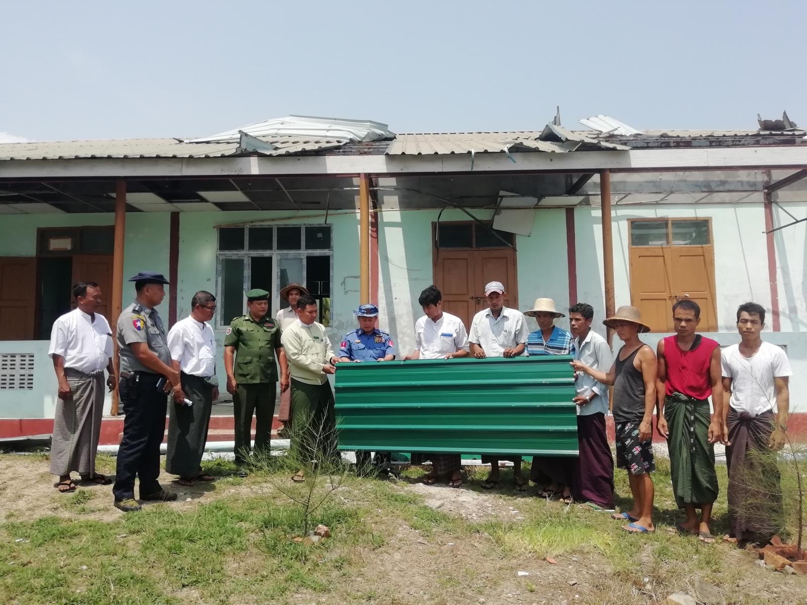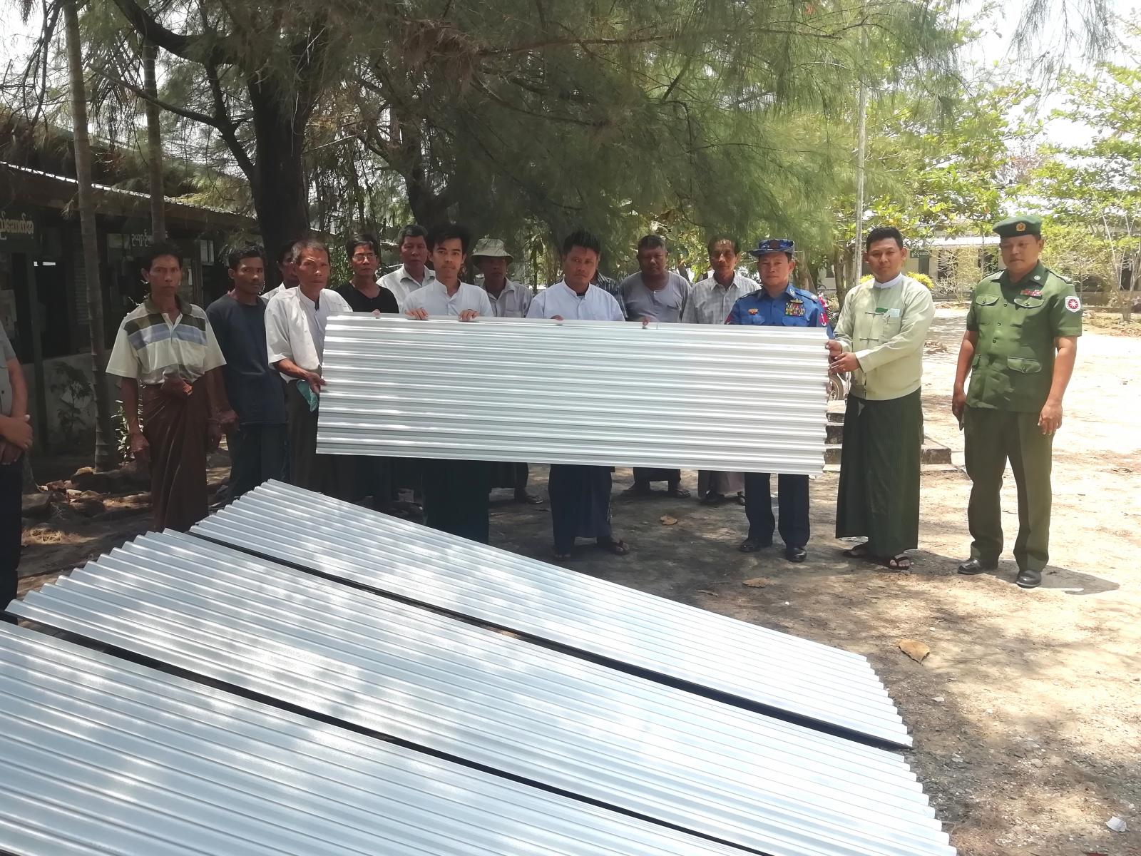 ဗိုလ်မှူးချုပ်ကျော်ကျော်ဦးနှင့်အဖွဲ့သည် မုန်တိုင်းဒဏ်ကြောင့် ထိခိုက်ပျက်စီးခဲ့သည့် စာသင်ကျောင်းများအား ရခိုင်ပြည်နယ် အစိုးရအဖွဲ့ ရန်ပုံငွေမှ ထောက်ပံ့ပေးအပ်လှူဒါန်းသော အမိုးသွပ်ပြားများအား သွားရောက်ထောက်ပံ့ပေးအပ် လှူဒါန်းခဲ့ရာ အ-ထ-က (ကမား) ကျောင်းအတွက် (၈)ပေ၊ (၃)ပေ၊ သွပ်ပြား(၅၀)ချပ်ကိုလည်းကောင်း၊ အ-လ-က(ခွဲ)(ကျူ) ကျောင်းအတွက် (၈)ပေ၊ (၃)ပေ၊ သွပ်ပြား(၅၀)ချပ် ကိုလည်းကောင်း၊ အ-လ-က (ကအီး) ကျောင်းအတွက် (၈)ပေ၊ (၃)ပေ၊ သွပ်ပြား(၃၀)ချပ်ကိုလည်းကောင်း ကျောင်း အကျိုးတော်ဆောင်အဖွဲ့နှင့် ကျောင်းတာဝန်ရှိသူများအား အသီးသီးထောက်ပံ့ပေးအပ်လှူဒါန်းခဲ့ကြသည်။