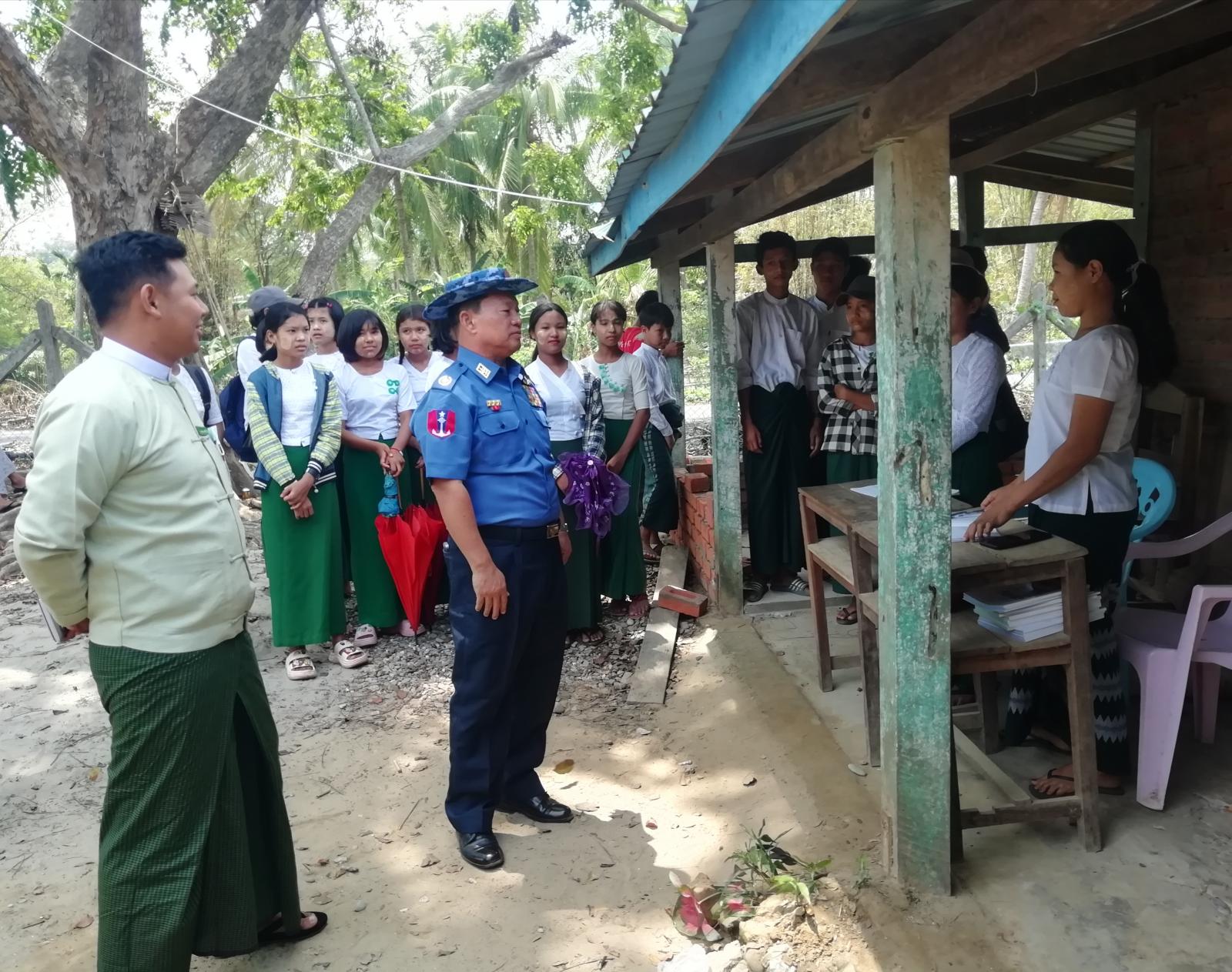 ရခိုင်ပြည်နယ် မာန်အောင်မြို့နယ်တွင် ရောက်ရှိနေသော ဗိုလ်မှူးချုပ် ကျော်ကျော်ဦးသည် ယမန်နေ့နံနက် ၁၀ နာရီခွဲက မြို့နယ်စီမံအုပ်ချုပ်ရေးအဖွဲ့ဥက္ကဋ္ဌ ဦးမင်းဇော်ဟိန်းနှင့်အဖွဲ့ဝင်များ လိုက်ပါလျက် သစ်ပုံကျေးရွာ အခြေခံပညာအထက်တန်းကျောင်းတွင် ၂၀၂၃-၂၀၂၄ ပညာသင်နှစ် ကျောင်းသား/သူများအား ကျောင်းအပ်နှံနေမှုများကို ကြည့်ရှုပြီး ဆရာ၊ ဆရာမများနှင့်ကျောင်းသား မိဘများအား အားပေးစကားပြောကြားခဲ့သည်။