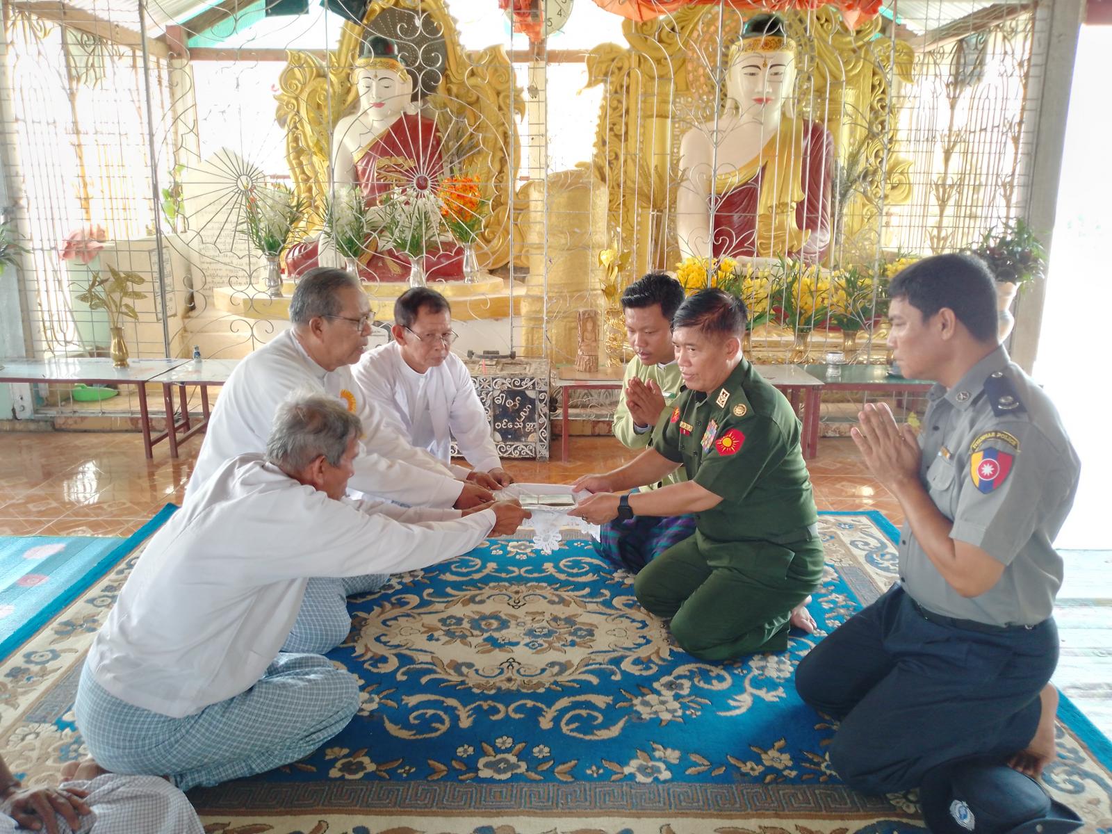 ရခိုင်ပြည်နယ်၊ မြေပုံမြို့နယ်၌ ဗိုလ်မှူးချုပ်ကျော်ကျော်စိုး ဦးဆောင်သော သဘာဝဘေး ပြန်လည်ထူထောင်ရေးကော်မတီဝင်များသည် ယနေ့နံနက် ၉ နာရီ ၃၀ မိနစ်က မြေပုံမြို့နယ်၊ အငူကျေးရွာရှိ လေဘေးသင့် ဗုဒ္ဓရင်ရိုးတော်ဓာတ်စေတီတော်မြတ်ကြီး၏ သာသနိက အဆောက်အဦ ခေါင်မိုးလန်ခြင်းများ ပြန်လည်ပြုပြင်ရန် အလှူငွေများလှူဒါန်းပြီး မြို့နယ်ပြည်သူဆေးရုံ၌ လေဘေးသင့်ဒေသမှ လူနာများအား သွားရောက်ကြည့်ရှုအားပေးသည်။
