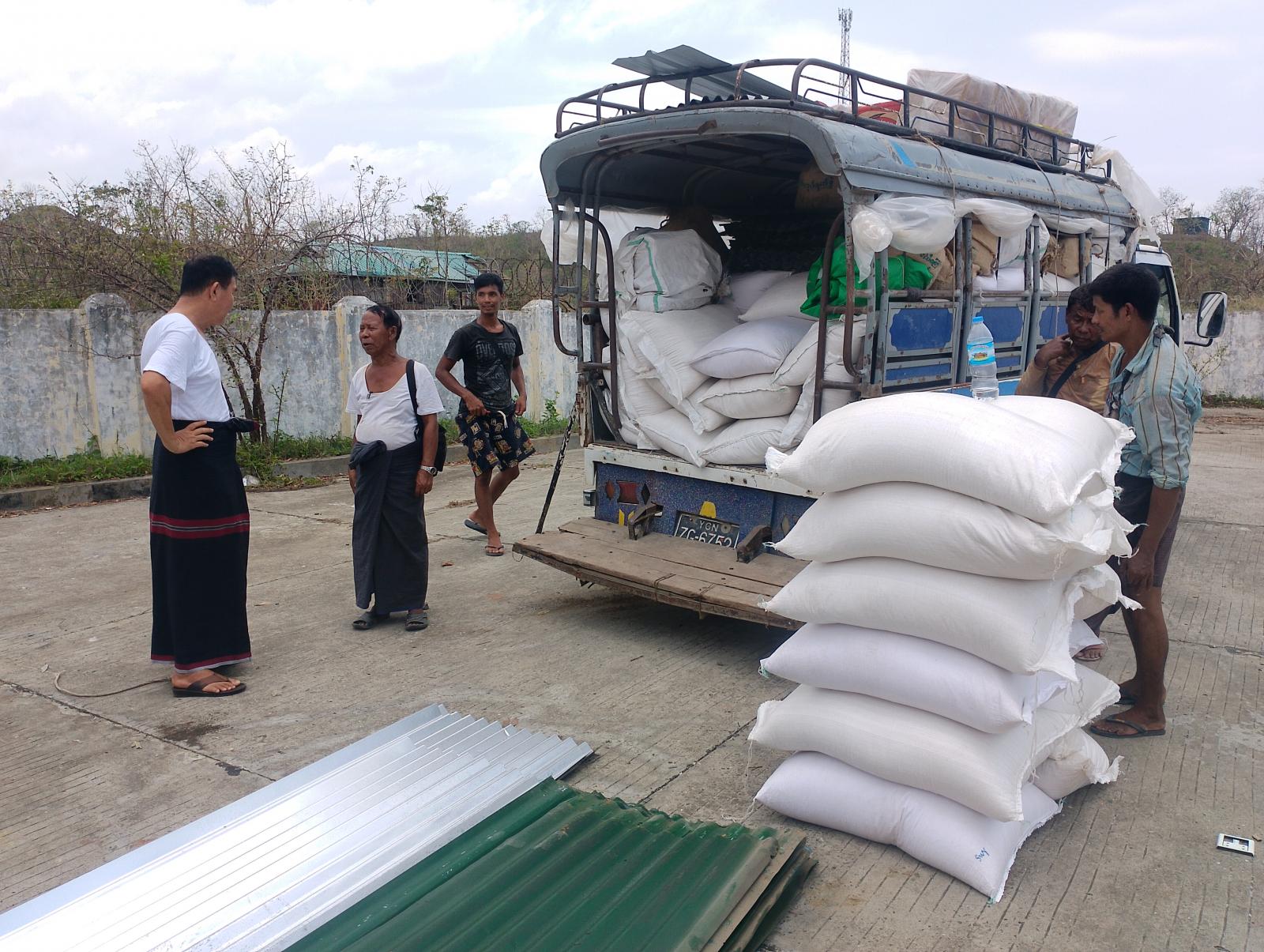 ထိုသို့ ထောက်ပံ့ပေးရာတွင် ပုဏ္ဏားကျွန်းမြို့နယ်၏ ပြန်လည်ထူထောင်ရေးလုပ်ငန်းများ ဆောင်ရွက်ရန် တာဝန်ပေးထားသည့် ဗိုလ်မှူးချုပ် ဝင်းမောင်နှင့် မြို့နယ်စီမံအုပ်ချုပ်ရေးအဖွဲ့ဥက္က ဦးမောင်စံဝင်းနှင့် အဖွဲ့ဝင်များ၏ အစီအမံဖြင့် ရခိုင်ပြည်နယ် အစိုးရအဖွဲ့မှ လှူဒါန်းသည့် စားနပ်ရိက္ခာဆန်နှင့် စားဆီ၊ ခေါက်ဆွဲခြောက်၊ ငါးစည်ဗူး၊ အိမ်မိုးသွပ်ပြား၊ မိုးသံ၊ စောင်၊ ဖိနပ်၊ မျက်နှာသုတ်နှင့် အဝတ်အထည်စသည့် ကယ်ဆယ်ရေးပစ္စည်း (၁၄)မျိုးတို့ကို ကျေးရွာအုပ်စု (၄၈)အုပ်စုသို့ စနစ်တကျ လွှဲပြောင်းထောက်ပံ့ပေးအပ်ခဲ့ကြသည်။