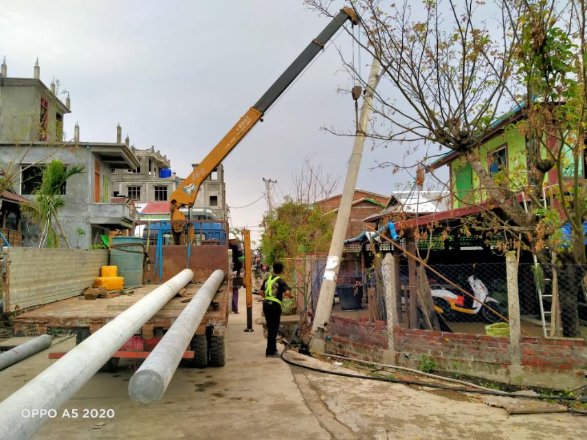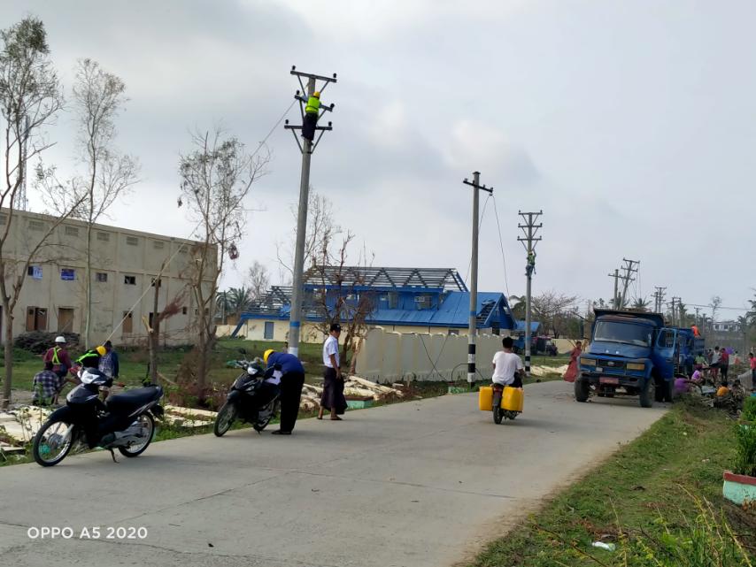 ရခိုင်ပြည်နယ်၊ စစ်တွေခရိုင်၊ ရသေ့တောင်မြို့တွင်(မိုခါ)မုန်တိုင်းကြောင့် ပျက်စီးပြိုလဲသွားသော ဓာတ်အားလိုင်းများ၊ ဓာတ်တိုင်များနှင့် ထရန်စဖော်မာများ ပြန်လည်ပြင်ဆင်ရေးကို အရှိန်အဟုန်ဖြင့် ဆောင်ရွက်လျက်ရှိသည်။