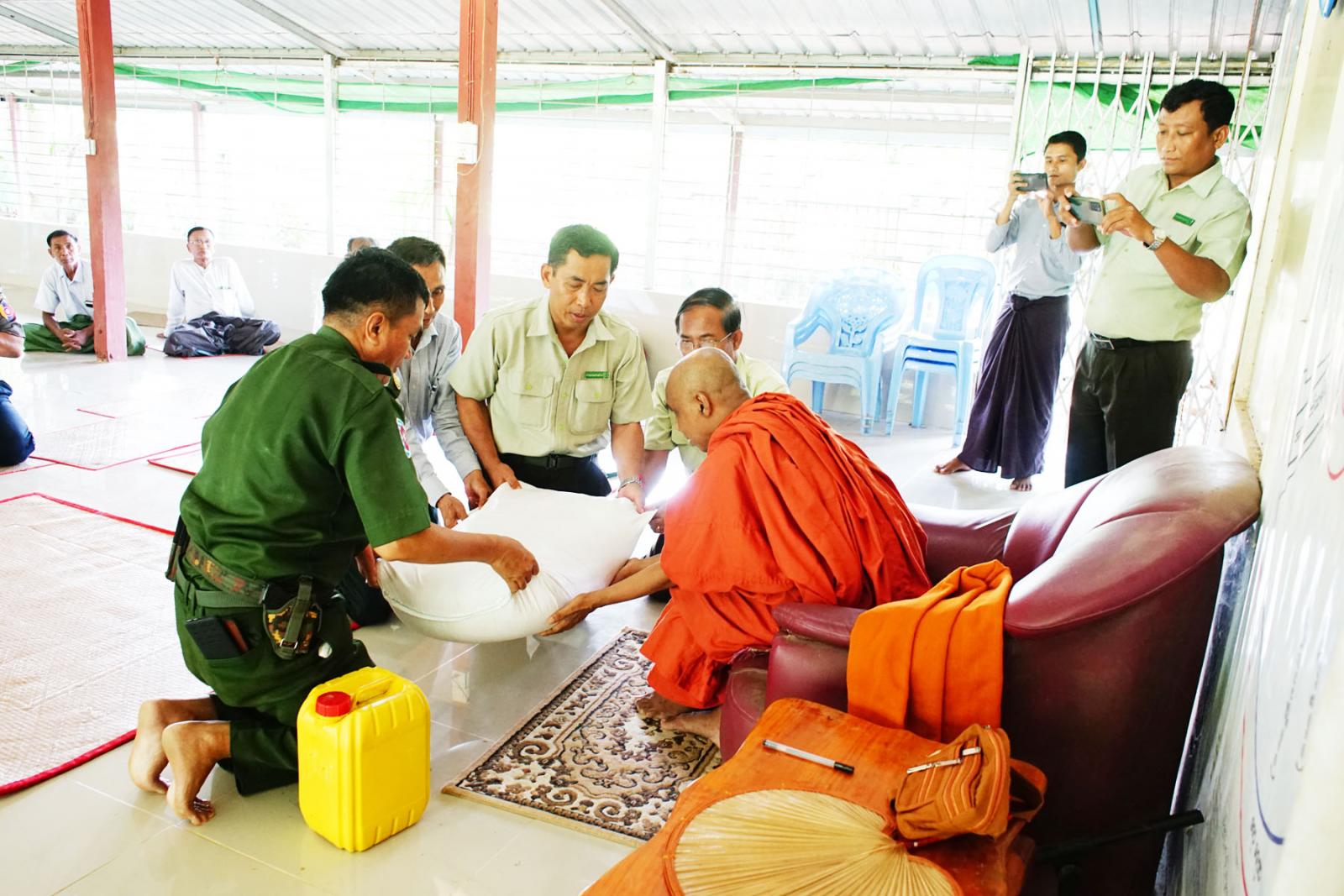 ထို့နောက် ခရိုင်စီမံအုပ်ချုပ်ရေးအဖွဲ့ဥက္ကဋ္ဌ ဦးမျိုးချစ်နှင့် တာဝန်ရှိသူများလိုက်ပါလျက် ငပလီမြို့ တပ်ဦးဘုန်းတော်ကြီးကျောင်းသို့ရောက်ရှိပြီး ဆွမ်းဆန်တော်နှင့်ဆီများ ဆက်ကပ် လှူဒါန်းခဲ့သည်။