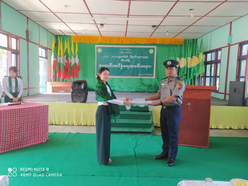 ထို့နောက်စစ်ဗျူဟာ(အဖွဲ့)အခြေချ(မိုင်းခတ်)စစ်ဗျူဟာမှူး ဗိုလ်မှူးကြီးရာဇာထွန်းနှင့် မြို့နယ်စီမံအုပ်ချုပ်ရေးအဖွဲ့ ဥက္ကဋ္ဌမြို့နယ်အုပ်ချုပ်ရေးမှူး ဦးမြင့်စိုးတို့က အဖွင့်အမှာစကား ပြောကြားပြီး၂၀၂၃-၂၀၂၄ ပညာသင်နှစ်အတွက် သင်ထောက်ကူပစ္စည်းများ၊ အခမဲ့ကျောင်းသုံး ပုံနှိပ်များ၊ အခမဲ့ဗလာစာအုပ်များအား တာဝန်ရှိသူများက ပေးအပ်ရာဆရာ၊ ဆရာမများ၊ ကျောင်းသား၊ ကျောင်းသူများကလက်ခံရယူပြီး မြို့နယ်ပညာရေးမှူး ဆရာကြီး ဦးလှမင်းနိုင် ကကျေးဇူးတင်စကားပြောကြား၍ ကျောင်းသားကျောင်းသူများက ပြည်မြန်မာ သီချင်းဖြင့် အခမ်းအနားကိုပိတ်သိမ်းခဲ့ကြသည်။