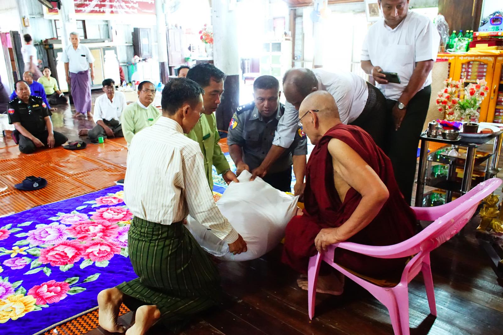 ရခိုင်ပြည်နယ်၊ သံတွဲ ခရိုင်စီမံအုပ်ချုပ်ရေးအဖွဲ့ဥက္ကဋ္ဌ ဦးမျိုးချစ်နှင့် တာဝန်ရှိသူများသည် ယနေ့ နံနက် ၉နာရီက သံတွဲမြို့နယ် ဥယျာဉ်ပြင်ကျေးရွာ မင်္ဂလာရာမဝိဟာရ ဘုန်းတော်ကြီးကျောင်းသို့ရောက်ရှိကာ လေဘေးသင့်မှုကြောင့် ပျက်စီးဆုံးရှုံးမှု အခြေအနေများနှင့် ဓမ္မာရုံပြန်လည်ပြုပြင်နေမှုတို့ကို လှည့်လည်ကြည့်ရှုစစ်ဆေးခဲ့ပြီး ပြန်လည်မိုးရန်လိုအပ်သည့် အမိုးသွပ်ပြား (၄၈)ချပ်နှင့် ဆွမ်းဆန်တော်(၁)အိတ်၊ ဆီတစ်ပုံးတို့ကို့လှူဒါန်းခဲ့သည်။