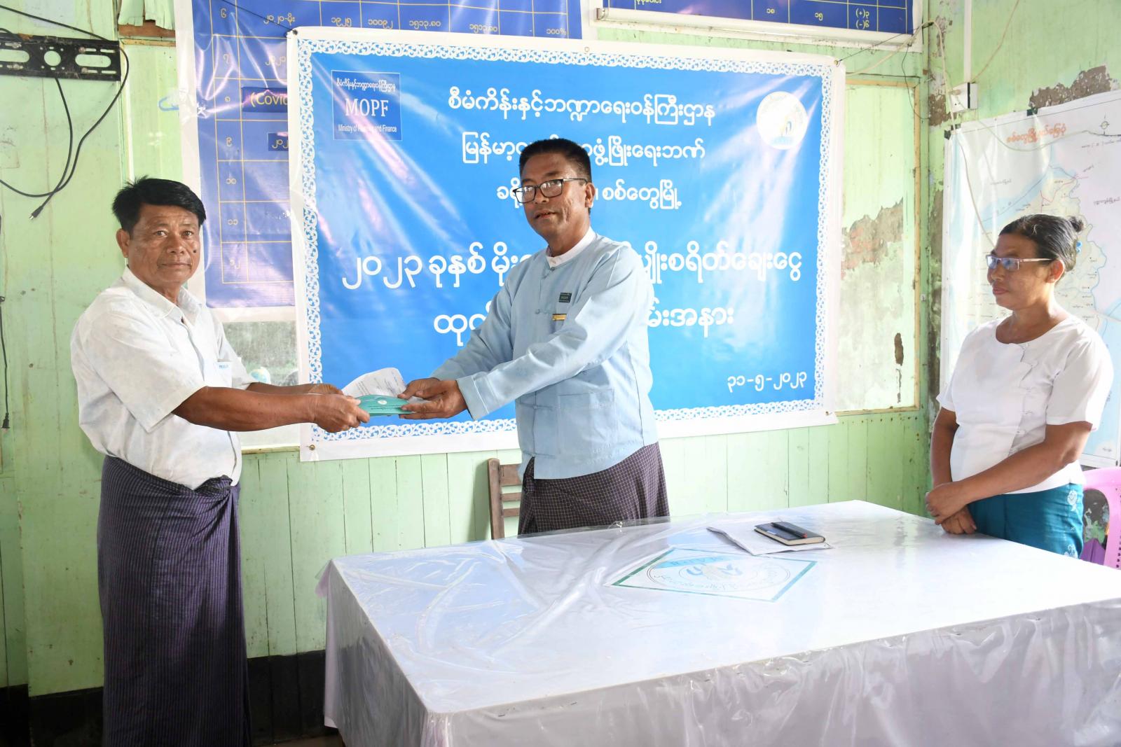 စီမံကိန်းနှင့်ဘဏ္ဍာရေးဝန်ကြီးဌာန၊ မြန်မာ့လယ်ယာဖွံ့ဖြိုးရေးဘဏ်၊ ခရိုင်ဘဏ်ခွဲ၊ စစ်တွေမြို့မှ တောင်သူဦးကြီးများအား ၂၀၂၃ ခုနှစ် မိုးရာသီ စိုက်ပျိုးစရိတ် ချေးငွေများ ထုတ်ချေးခြင်းအခမ်းအနားကို ယနေ့နေ့လယ်ပိုင်းက ပြုလုပ်သည်။