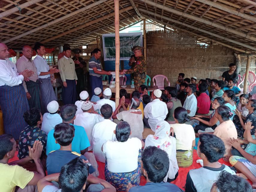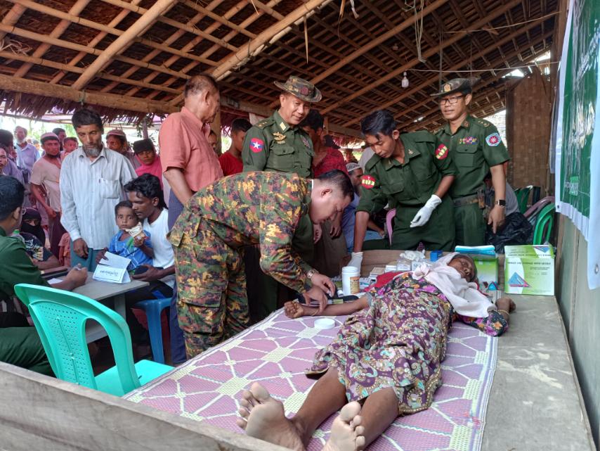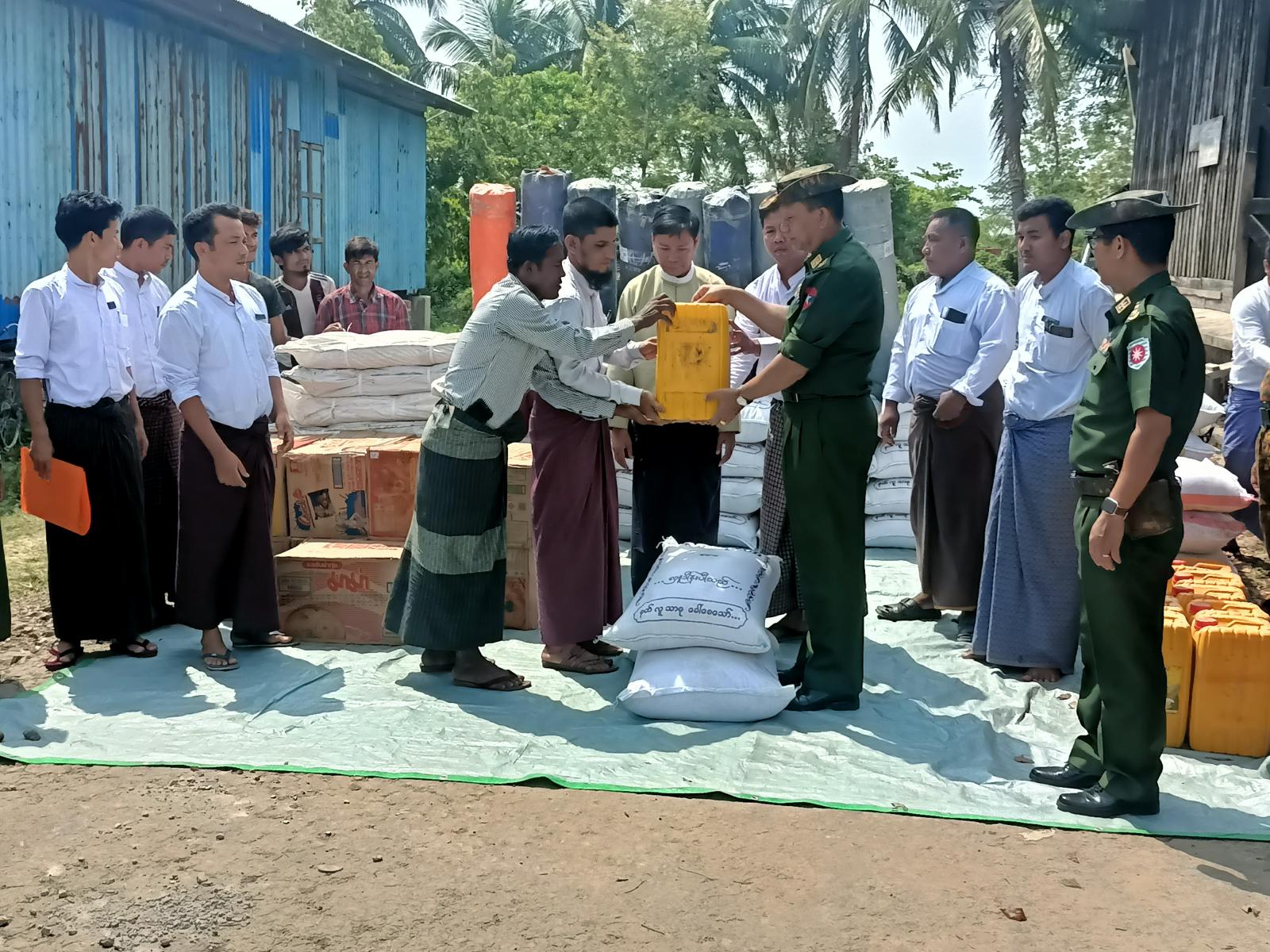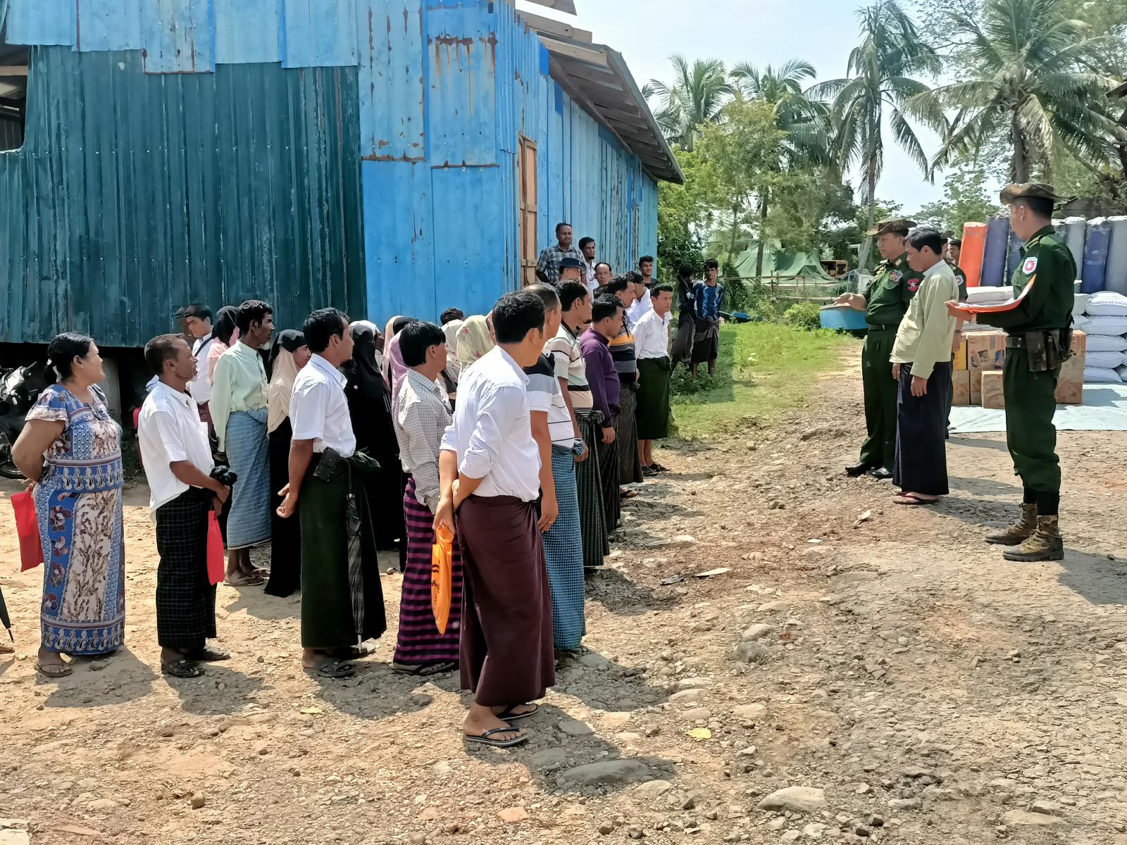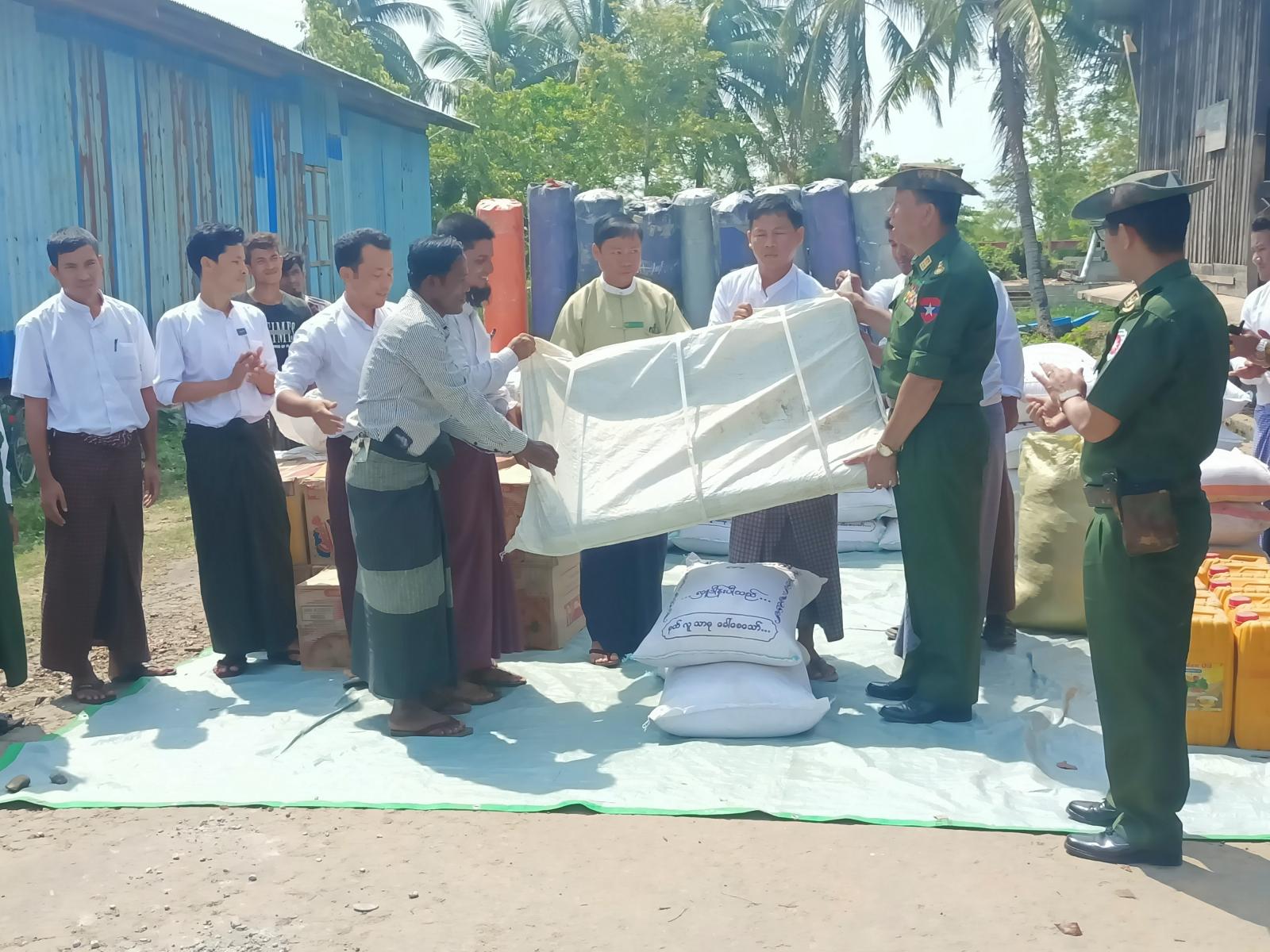 ရခိုင်ပြည်နယ်၊ မောင်တောခရိုင်၊ ဘူးသီးတောင်မြို့နယ်တွင် ပြန်လည်ထူထောင်ရေးလုပ်ငန်းများ ဆောင်ရွက်နိုင်ရန်ရောက်ရှိနေသော ဒုတိယဗိုလ်ချုပ်ကြီးအေးဝင်းနှင့် တာဝန်ရှိသူများသည် ယမန်နေ့နံနက်(၉)နာရီအချိန်က ဘူးသီးတောင်မြို့နယ် ဒပြုချောင်းကျေးရွာအုပ်စု အနောက်ပိုင်းတိုင်းစစ်ဌာနချုပ်၊ နယ်လှည်ဆေးကုသရေးအဖွဲ့မှ ဒေသခံပြည်သူများအား (အခမဲ့)ဆေးကုသပေးနေမှုများကို လှည့်လည်ကြည့်ရှုကာ အားပေးစကားများပြောကြားခဲ့ပြီး လိုအပ်သည်များကို လမ်းညွှန်မှာကြားကာ မုန်တိုင်းကြောင့် ပျက်စီးဆုံးရှုံးမှုဒဏ်ခံခဲ့ရသော ကျေးရွာအုပ်စု (၅)အုပ်စုမှ လေဘေးသင့်ပြည်သူများအား ထောက်ပံ့ရေးပစ္စည်းဆန်၊ဆီ၊ဆား၊ ခေါက်ဆွဲခြောက်များ ထောက်ပံ့ခဲ့ပြီး လေဘေးသင့်ပြည်သူများအား အားပေးစကားများ ပြောကြားခဲ့သည်။