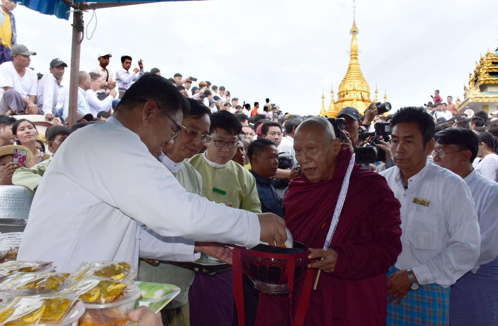 ဆက်လက်၍ သံဃာ့ဒါနဆွမ်းသပိတ်နှင့် ဆွမ်းဆန်စိမ်းလောင်းလှူပွဲကို ဆက် လက်ကျင်းပ ပြုလုပ်ရာ ပြည်နယ်ဝန်ကြီးချုပ်နှင့်ဇနီး၊ ပြည်နယ်တရားလွှတ်တော်တရားသူကြီးချုပ်၊ မြောက်ပိုင်း တိုင်းစစ်ဌာနချုပ် တိုင်းမှူးနှင့်ဇနီး၊ ပြည်နယ်ဝန်ကြီးများ၊ ပြည်နယ်အဆင့်ဌာနဆိုင်ရာများ၊ နယ်မြေခံ တပ်ရင်းတပ်ဖွဲ့များ၊ ဒေသခံအလှူရှင်များက ဘုရားအမှူးပြုသော ဆရာတော်/ သံဃာတော်များနှင့် သီလရှင်ဆရာလေး စုစုပေါင်းအပါး (၁၅၀၀)တို့အား သံဃာ့ဒါနဆွမ်းသပိတ်၊ ဆွမ်းဆန်စိမ်းနှင့် လှူဖွယ် ပစ္စည်းများကို သတ်မှတ်နေရာအသီးသီးတွင် လောင်းလှူပူဇော်ခဲ့ကြသည်။