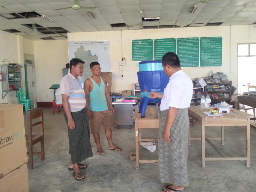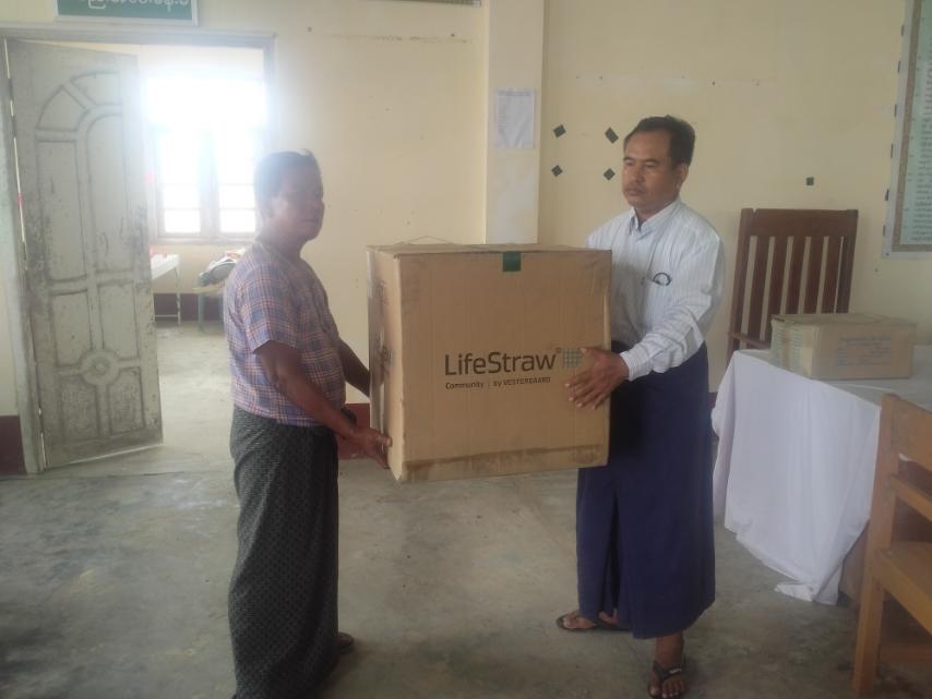 ကျေးရွာအုပ်ချုပ်ရေးမှူးများက လာရောက်ထုတ်ယူကြရာ မြို့နယ်ကျေးလက်ဒေသဖွံ့ဖြိုးတိုးတက်ရေးဦးစီးဌာန၊ ဦးစီးမှူး ဦးတင်မောင်ဦးက Life Straw ရေသန့်စက်သုံးစွဲ နည်းအား ရှင်းလင်းပြောကြားပြီး Life Straw ၅၀ လုံးအား ကျေးရွာ ၃၂ ရွာကိုတာဝန်ရှိသူများက ဖြန့်ဝေပေးခဲ့သည်။ အဆိုပါ ရေသန့်စက်များသည် ကျေးလက်နေ ပြည်သူများ အတွက် သန့်ရှင်းသော သောက်ရေများ လုံလောက်စွာ ရရှိမည်ဖြစ်ကြောင်း သိရသည်။