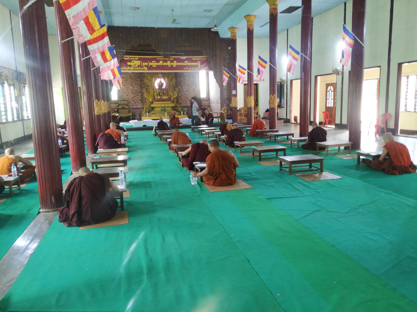 ထိုသို့ဖြေဆိုလျက်ရှိရာတွင် ပါစိတ္တိယပါဠိဘာသာရပ်တွင် ဖြေဆိုရန်စာရင်းရှိ သံဃာ(၂၇)ပါးအနက် (၁၈)ပါးဖြေဆိုခဲ့ပြီး စာဖြေသံဃာတော် များအဆင်ပြေစေရန်အတွက် ခရိုင်စီမံအုပ်ချုပ်ရေးအဖွဲ့ဥက္ကဋ္ဌ ဦးကျော်မြင့်လှိုင်နှင့်အဖွဲ့ဝင်များ၊ မြို့နယ်စီမံအုပ်ချုပ်ရေးအဖွဲ့ဥက္ကဋ္ဌ ဦးဇာနည်တိုး နှင့်အဖွဲ့ ဝင်များ၊ ဌာနဆိုင်ရာများက ဆွမ်းဘောဇဉ်များကို လှူဒါန်းလျက် ရှိသည်။