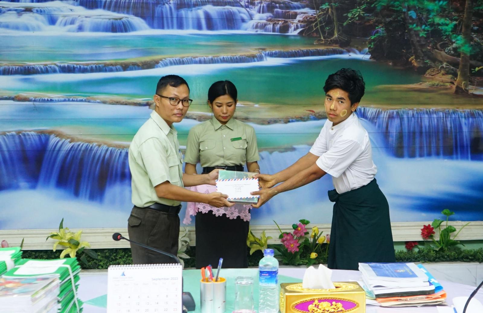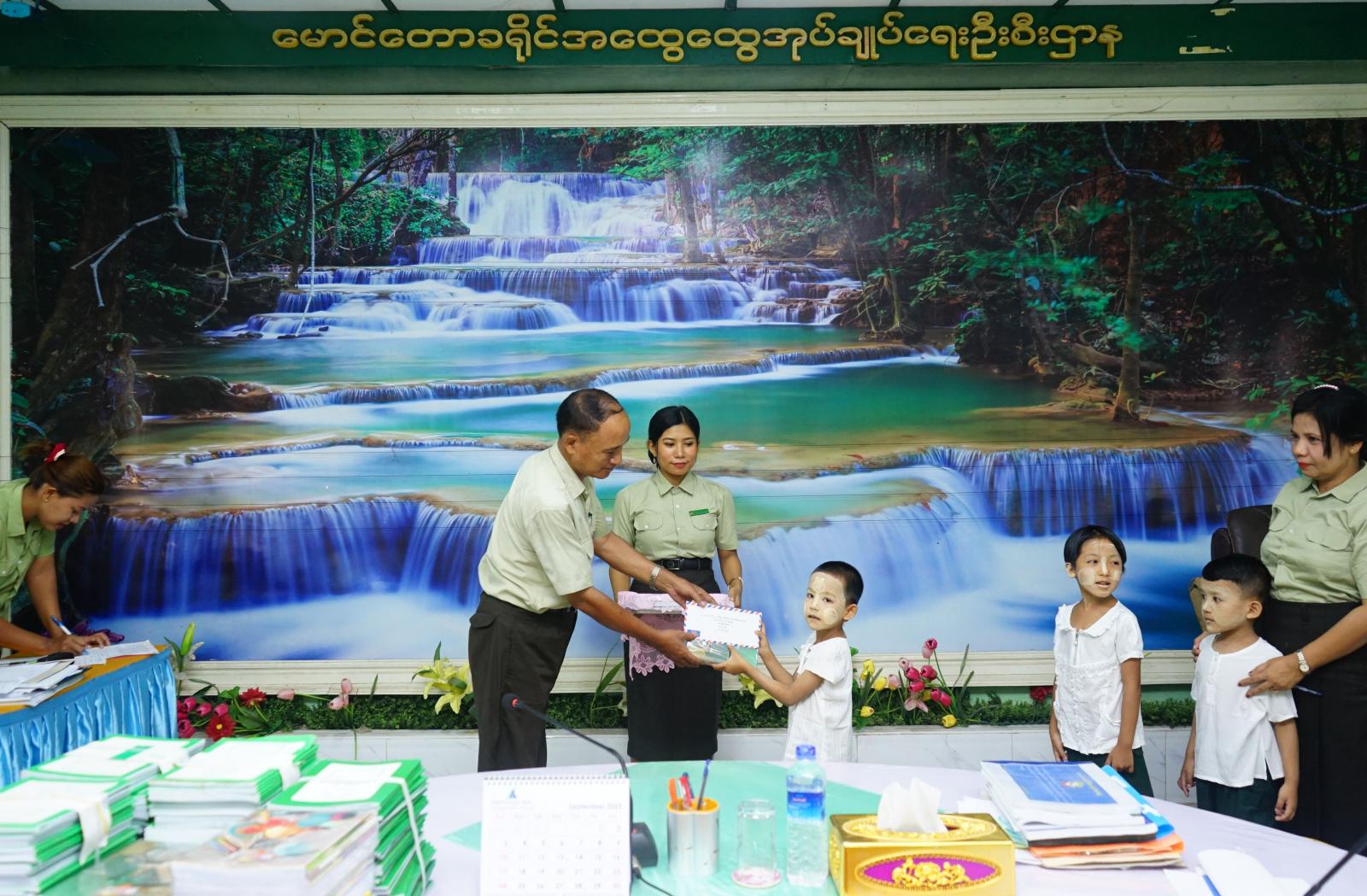 ရှေးဦးစွာ ဒုတိယခရိုင်အုပ်ချုပ်ရေးမှူး ဦးရွှေလှအောင်က ပညာသင်ထောက်ပံ့ကြေးပေးအပ်ရခြင်းနှင့် ပတ်သက်၍ ရှင်းလင်းပြောကြားပြီး ခရိုင်အထွေထွေအုပ်ချုပ်ရေးဦးစီးဌာနရှိ ဝန်ထမ်း၊ သားသမီးများအတွက် တက္ကသိုလ်အဆင့် ကျောင်းသား/သူ ၈ ဦး အတွက် တစ်ဦးလျှင် ၅၀၀၀၀ ကျပ်၊ အထက်တန်းအဆင့် ကျောင်းသား/သူ ၆ ဦး အတွက် တစ်ဦး လျှင် ၃၀၀၀၀ ကျပ် အလယ်တန်းအဆင့် ကျောင်းသား /သူ ၇ ဦးအတွက် တစ်ဦးလျှင် ၂၅၀၀၀ ကျပ်၊ မူလတန်းအဆင့် ကျောင်းသား/သူ ၁၂ ဦး အတွက် တစ်ဦးလျှင် ၂၀၀၀၀ ကျပ် ၊ Kg အတန်းအတွက် တစ်ဦးလျှင် ၂၀၀၀၀နှုန်း၊ ကျောင်းသုံးဗလာစာအုပ်နှင့် ကျောင်းဝတ်စုံများအား ဒုတိယခရိုင်အုပ်ချုပ်ရေးမှူး ဦးရွှေလှအောင်၊ လက်ထောက်ညွန်ကြားရေးမှူး ဦးကျော်ဇောအေးနှင့် တာဝန်ရှိသူများက ဝန်ထမ်းသား၊သမီးများအား အသီးသီးထောက်ပံ့ပေးအပ်ခဲ့ ကြရာ စုစုပေါင်း ကျောင်းသား/သူ (၃၇)ဦးအတွက် ထောက်ပံ့ငွေမှာ တစ်ဆယ်နှစ်သိန်းကိုးသောင်း ငါးထောင်ငါးရာဖြစ်ပြီး ဝန်ထမ်းမိဘ တစ်ဦးမှ ကျေးဇူးတင်စကား ပြောကြားခဲ့ကြောင်းသိရသည်။