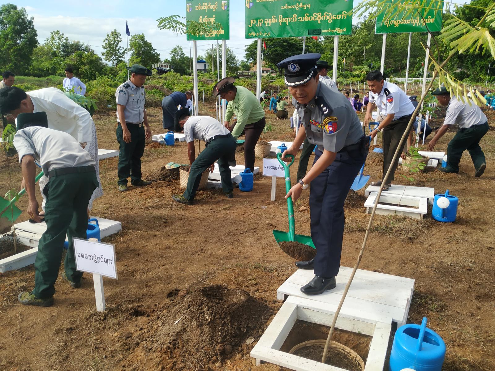 စုပေါင်းသစ်ပင်စိုက်ပျိုးရာတွင် ပျဉ်းကတိုး(၈၀)ပင်၊ မဟော်ဂနီ(၁၀၀)ပင်၊ မန်ဂျန်ရှား(၁၀၀)ပင်၊ ခရေ(၅၀)ပင်၊ ကံ့ကော်(၅၀)ပင်၊ ဗန်ဒါ (၁၀၀)ပင်နှင့် စိန်ပန်း(၁၀၀)ပင် စုစုပေါင်း(၅၈၀)တို့ကို စိုက်ပျိုးနိုင်ခဲ့ကြောင်း မြို့နယ်သစ်တောဦးစီးဌာနမှသိရသည်။
