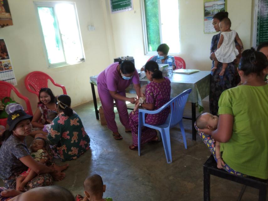 ရခိုင်ပြည်နယ်၊ အမ်းခရိုင်၊ အမ်းမြို့၌ ကျေးလက်ကျန်းမာရေးဦးစီးဌာနဝန်ထမ်းများက မြို့ပေါ် ရပ်ကွက်များအတွင်းရှိ အသက် (၂)နှစ်အောက် ကလေးများနှင့် ကိုယ်ဝန်ဆောင်မိခင်များအား ပုံမှန်ကာကွယ် ဆေးထိုးနှံတိုက်ကျွေးခြင်းကို ယနေ့နံနက် ၁၀ နာရီအချိန်က စတင် ၍ ဆောင်ရွက်လျက်ရှိကြောင်း သိရသည်။