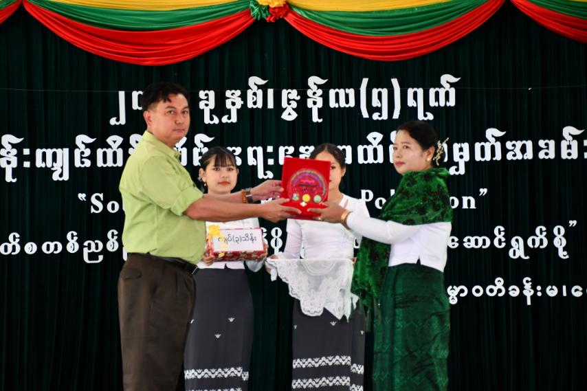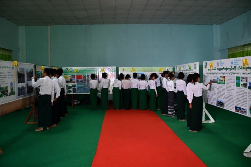 ယင်းနောက် တက်ရောက်လာကြသည့် ဌာနဆိုင်ရာအကြီးအကဲများနှင့် အရပ်ဖက်လူမှု အဖွဲ့အစည်းမှ တာဝန်ရှိသူများက ပတ်ဝန်းကျင်ထိန်းသိမ်းရေးဦးစီးဌာနမှ ခင်းကျင်းပြသထား သည့် ၂၀၂၃ ခုနှစ်၊ ကမ္ဘာ့ပတ်ဝန်းကျင်ထိန်းသိမ်းရေးနေ့” ပလတ်စတစ် ညစ်ညမ်းမှုတိုက်ဖျက်ဖို့ ပူးပေါင်းဖြေရှင်းဆောင်ရွက်စို့” “Solutions To Plastic Pollution” နံရံကပ်ပိုစတာများ၊ နံရံကပ်စာစောင်များနှင့် ဌာနအတွင်း ပတ်ဝန်းကျင်အရည်အသွေးတိုင်းတာရေး စက်ကိရိယာပစ္စည်းများ ခင်းကျင်းပြသထားရှိမှုအားလည်းကောင်း၊ ကုမ္ပဏီများမှပြသထားသည့် နံရံကပ်ပိုစတာများအားလည်းကောင်း လှည့်လည်ကြည့်ရှုခဲ့ပြီး အဆိုပါဦးစီးဌာနနှင့်ကုမ္ပဏီများမှ တာဝန်ရှိသူများက တက်ရောက်လာသူ များကို အမှတ်တရလက်ဆောင်ပစ္စည်းများ ပေးအပ်ခဲ့ကြောင်း သိရသည်။