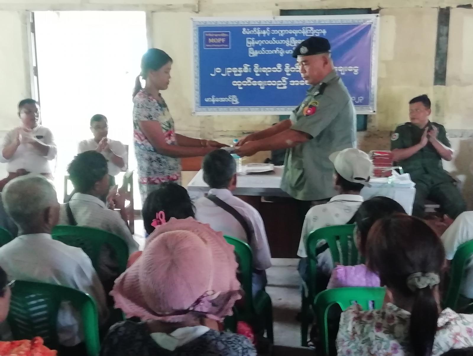 ထို့နောက် မြို့နယ်စီမံအုပ်ချုပ်ရေးအဖွဲ့ဥက္ကဋ္ဌ ဦးမင်းဇော်ဟိန်းနှင့် အဖွဲ့ဝင်များ၊ သက်ဆိုင်ရာ တာဝန်ရှိသူများက တောင်သူတစ်ဦးချင်းစီအလိုက် ချေးငွေများ ထုတ်ပေးရာ တောင်သူများက လက်ခံရယူခဲ့ကြသည်။