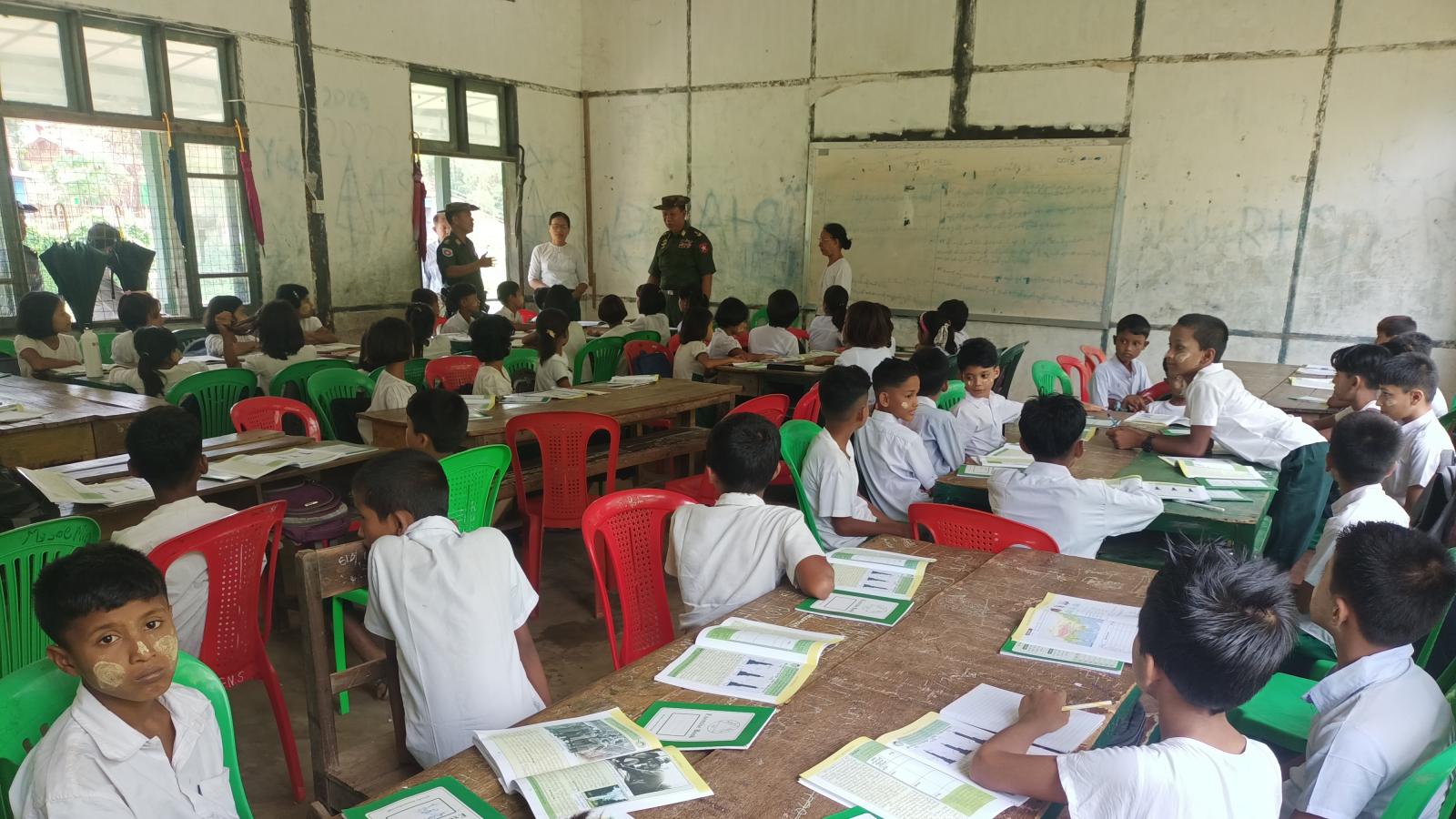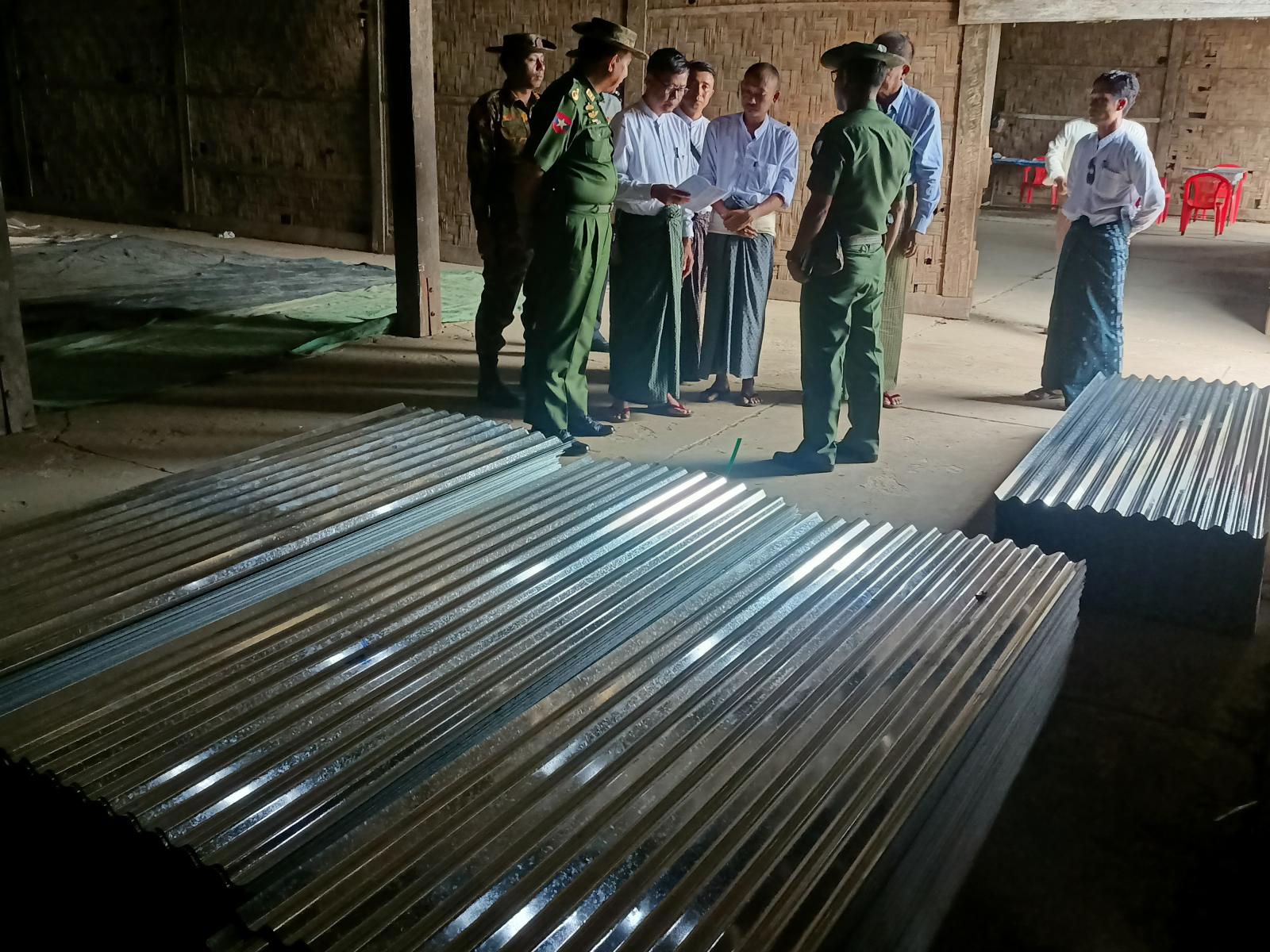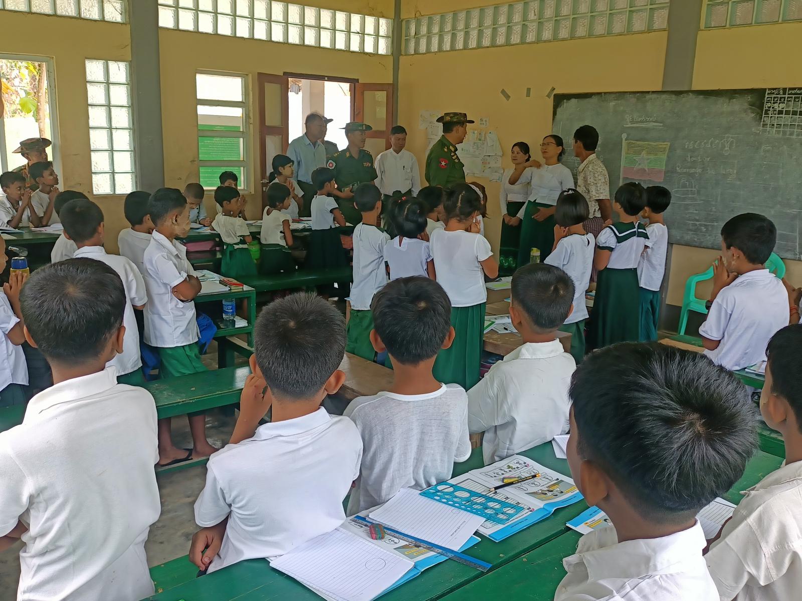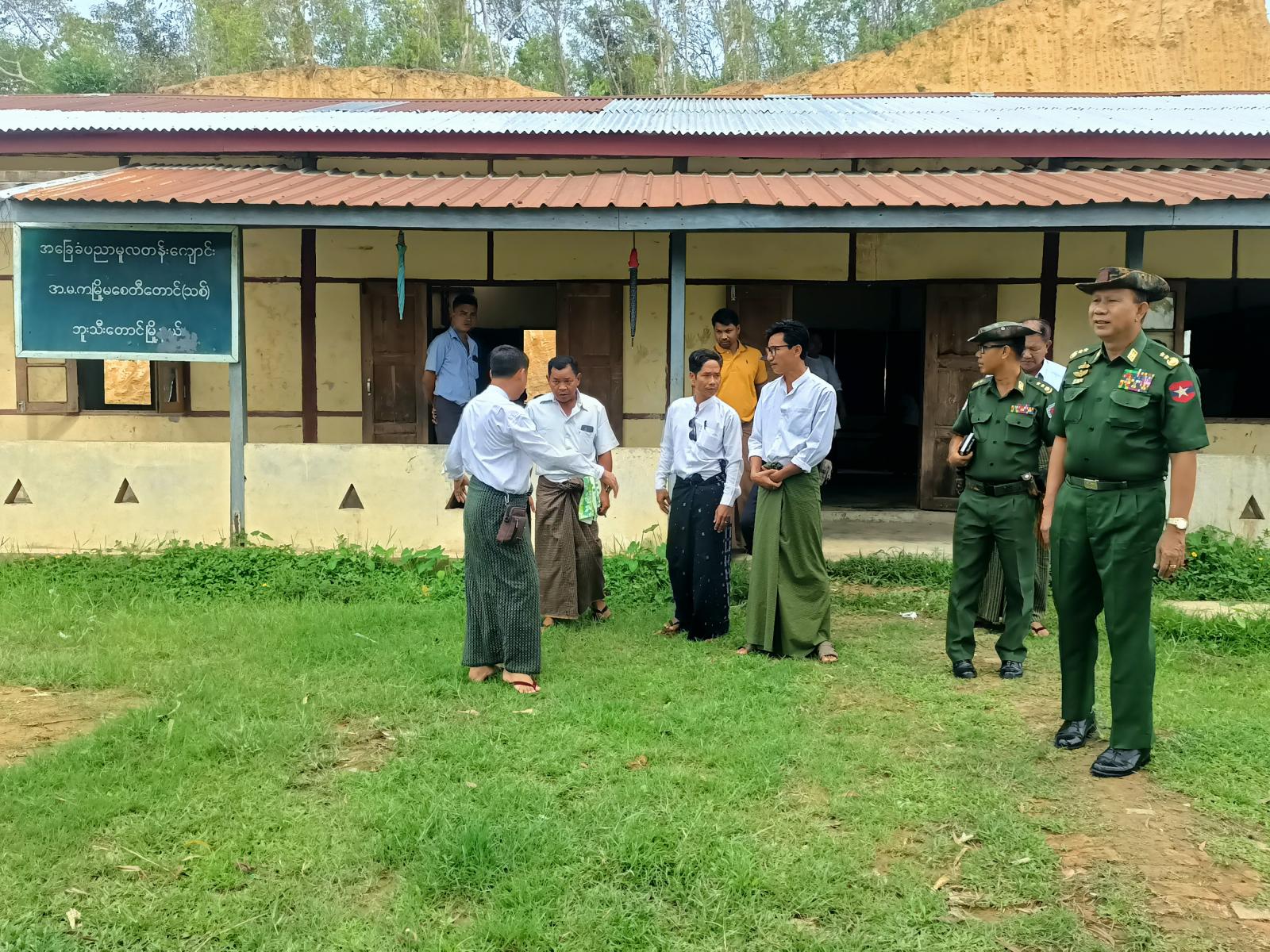 ရခိုင်ပြည်နယ်၊ မောင်တောခရိုင်၊ ဘူးသီးတောင်မြို့နယ်အတွင်း ပြန်လည်ထူထောင်ရေးလုပ်ငန်းများ ဆောင်ရွက်ရန် ရောက်ရှိနေသော ဒုတိယဗိုလ်ချုပ်ကြီးအေးဝင်းနှင့် တာဝန်ရှိသူများသည် ယမန်နေ့နံနက် (၁၀း၀၀)အချိန်က ဘူးသီးတောင်မြို့နယ် မီးရထားဆိပ်ရပ်ကွက်ရှိ စားသုံးသူရေးရာဦးစီးဌာန ဂိုဒေါင်၌ ပြန်လည်ထူထောင်ရေးပစ္စည်းများဖြစ်သည့် သွပ်များ ရောက်ရှိနေမှု အခြေအနေ များအား သွားရောက်ကြည့်ရှုကာ ပြန်လည်ဖြန့်ဝေမည့် အစီအစဉ်များအား တာဝန်ရှိသူများအား လမ်းညွှန်မှာကြားခဲ့ပြီး ဆက်လက်ထွက်ခွာလာရာ ဒုတိယဗိုလ်ချုပ်ကြီး အေးဝင်းနှင့် အဖွဲ့သည် အ.မ.က မြို့မစေတီတောင်၊ အ.ထ.က(ခွဲ)၂၊ သုဓမ္မာရုံဘုန်းတော်ကြီးစာသင်ကျောင်း၊ အ.လ.က(ခွဲ)သပြေကုန်း၊ အ.မ.က(၅၅၁)၊ အ.ထ.က(ခွဲ)၃ စာသင်ကျောင်းများသို့ သွားရောက်ပြီး မိုခါမုန်တိုင်းကြောင့် ပျက်စီးသွားသည့် ကျောင်းအဆောက်အဦများအား ယာယီပြင်ဆင်ဆောင်ရွက်ထားရှိနေမှုနှင့် ကျောင်းသား၊ကျောင်းသူများ မိုးလုံ၊ လေလုံ ပညာသင်ကြားနေမှုတို့အား သွားရောက်ကြည့်ရှုကာ အနာဂါတ်ခေါင်းဆောင်များဖြစ်လာမည့် ကျောင်းသား၊ကျောင်းသူများအား ပညာသင်ကြားချိန်တွင် ပညာတတ်မြောက်အောင် သင်ယူကြရန် အနာဂါတ်တွင် ဘက်စုံထူးချွန်သော ဗဟုသုတကြွယ်ဝသည့် လူငယ်များဖြစ်ပေါ်လာစေရန် ပညာကို ကြိုးစားသင်ယူကြရန် အားပေးစကားများ ပြောကြားပြီးကျောင်းအုပ်ဆရာ၊ဆရာမကြီးများနှင့် တာဝန်ရှိသူများအား လိုအပ်သည်များကို ပေါင်းစပ်ညှိနှိုင်း ဆောင်ရွက်သွားကြရန်လမ်းညွှန်မှာကြားခဲ့ကြောင်းသိရသည်။