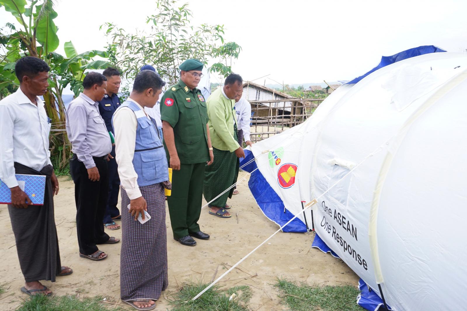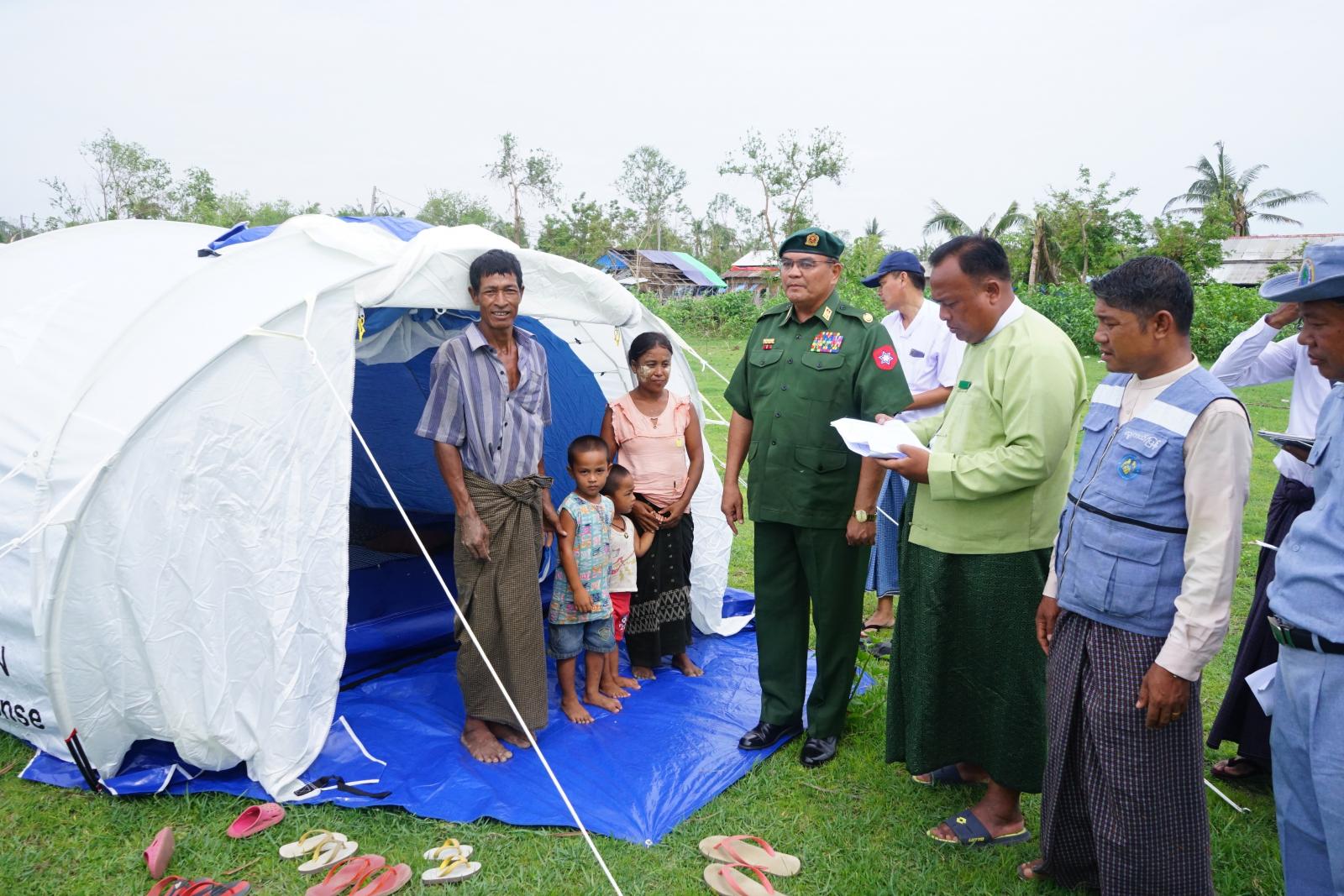 မောင်တောမြို့နယ်အတွင်း မုန်တိုင်းဘေးကြောင့် လေဘေးသင့်ပြီး နေအိမ်များပြိုလဲပျက်စီးခဲ့သော ကျောက်ပန္ဒူကျေးရွာ၊ အင်းဒင်ကျေးရွာ ၊ပဲရုံကျေးရွာ၊ အောင်သုခကျေးရွာနှင့် မြိုယုကျေးရွာများ တွင် ထောက်ပံ့ပေးအပ်ထားသော ယာယီတဲများအား သက်ဆိုင်ရာဌာနဆိုင်ရာအဖွဲ့များ၊ မီးသတ်တပ်ဖွဲ့၀င်များ၊ နယ်ခြားစောင့်ရဲတပ်ဖွဲ့၀င်များက ကူညီဆောက်လုပ်ပေးလျက်ရှိသဖြင့် ပြန်လည်ထူထောင်ရေး လုပ်ငန်းများ ဆောင်ရွက်ရန်ရောက်ရှိနေသော ဗိုလ်မှူးချုပ် တင်ဆွေ၊ ခရိုင်စီမံအုပ်ချုပ်ရေးအဖွဲ့ ဉက္ကဋ္ဌ ဦးနေဦးနှင့် တာ၀န်ရှိသူများသည် အဆိုပါ ကျေးရွာသို့ သွားရောက်ကြည့်ရှုပြီး ဆက်လက်တည်ဆောက်လျက်ရှိသော ယာယီတဲများ ဆောက်လုပ်နေမှုနှင့် ဆောက်လုပ်ပြီးစီးမှု အခြေအနေများအား လှည့်လည်ကြည့်ရှုရာ ယာယီတဲများအတွင်း နေထိုင်လျက်ရှိကြသော ပြည်သူများအား ရင်းရင်းနှီးနှီးတွေ့ဆုံပြီး အားပေး စကားပြောကြားကာ လိုအပ်သည်များအား ပေါင်းစပ်ညှိနှိုင်းဆောင်ရွက်ပေးခဲ့ကြသည်။ ယင်းနောက် အင်းဒင်ကျေးရွာအုပ်စု အောင်သုခကျေးရွာရှိ ဘုန်းတော်ကြီးကျောင်းသို့ သွားရောက်ကာ ကျောင်းထိုင်ဆရာတော်အား ဖူးမျှော်ကြည်ညိုပြီး ယာယီ သီတင်းသုံးနိုင်ရန်အတွက် လေဘေးကြောင့် ပြိုလဲပျက်စီးခဲ့သော ကျောင်းတော်ကြီးအားပြုပြင်နိုင်ရေး လိုအပ်သည်များအား ကူညီဆောင်ရွက် ပေးခဲ့ကြောင်းသိရသည်။