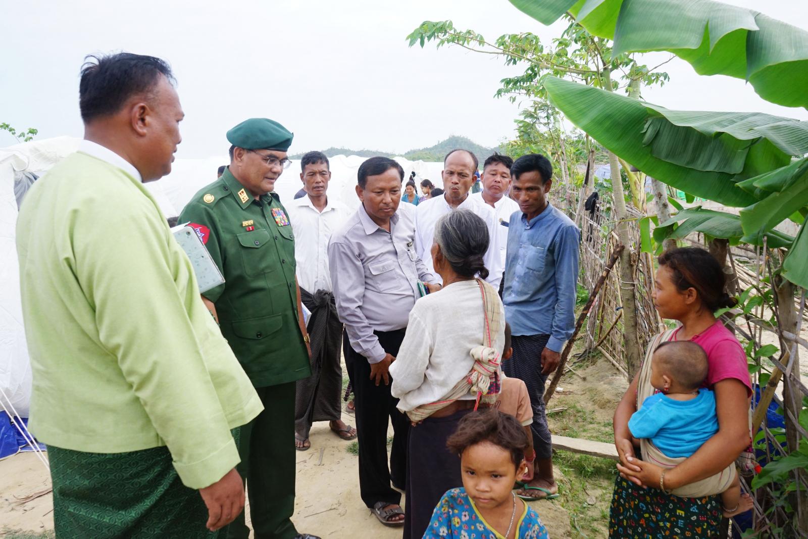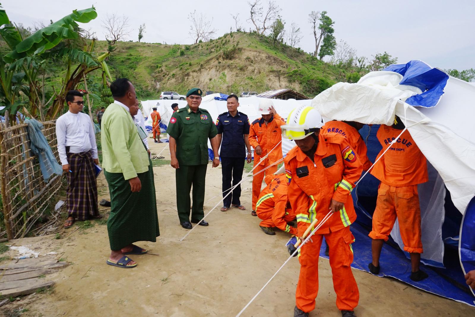 ရခိုင်ပြည်နယ် မောင်တောမြို့နယ်တွင် ပြန်လည်ထူထောင်ရေးအတွက် ရောက်ရှိနေသော ဗိုလ်မှူးချုပ် တင်ဆွေသည် တာ၀န်ရှိသူများနှင့်အတူ မုန်တိုင်းဘေးကြောင့် ပျက်စီးခဲ့သည့် ကျေးရွာများအတွင်း ယာယီတဲများ တည်ဆောက်နေမှုများနှင့် ယာယီတဲအတွင်း ပြည်သူများနေထိုင်နေမှုအား ယမန်နေ့ နေ့လယ်ပိုင်းက မြေပြင်ကွင်းဆင်း လိုက်လံကြည့်ရှုခဲ့ကြသည်။