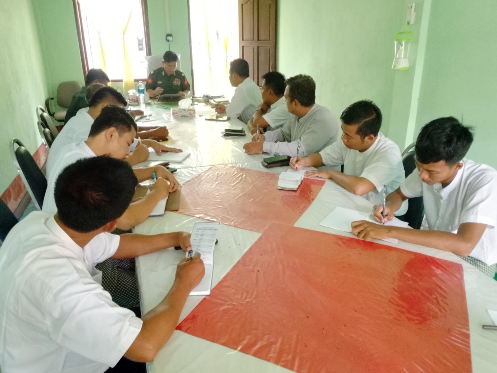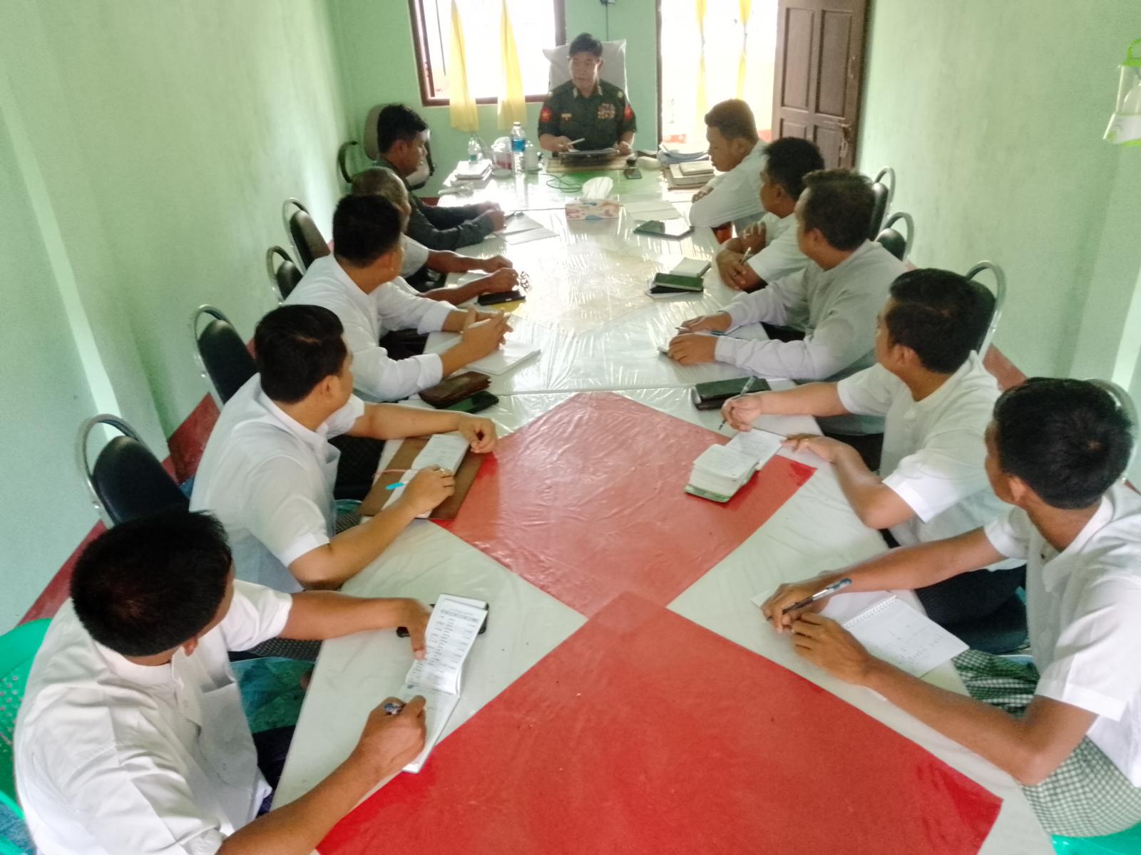 ပြည်တွင်းရေကြောင်းပိုင် “ကုလားတန်(၅)” ရေယာဉ်ဖြင့် ထပ်မံရောက်ရှိလာမည့် ရခိုင်ပြည်နယ်အစိုးရအဖွဲ့၏ သဘာဝဘေးပြန်လည်ထူထောင်ရေးကော်မတီနှင့် အလှူရှင်များ လှူဒါန်းထားသည့်ပစ္စည်းများ မြေပုံမြို့သို့ရောက်ရှိပါက လေဘေးသင့်ပြည်သူများ လက်ဝယ်သို့ အမြန်ရောက်ရှိနိုင်ရေးအတွက် ဗိုလ်မှူးချုပ်ကျော်ကျော်စိုးနှင့် မြို့နယ်စားရေးရိက္ခာနှင့် ထောက်ပံ့ပစ္စည်းများ ဖြန့်ဖြူးရေးကော်မတီဝင်များ ညှိနှိုင်းအစည်းအဝေးကို ယနေ့နံနက်(၁၁)နာရီက မြို့နယ်အထွေထွေအုပ်ချုပ်ရေး ဦးစီးဌာန၊ ဧည့်ရိပ်သာ၌ ညှိနှိုင်းဆွေးနွေးသည်။