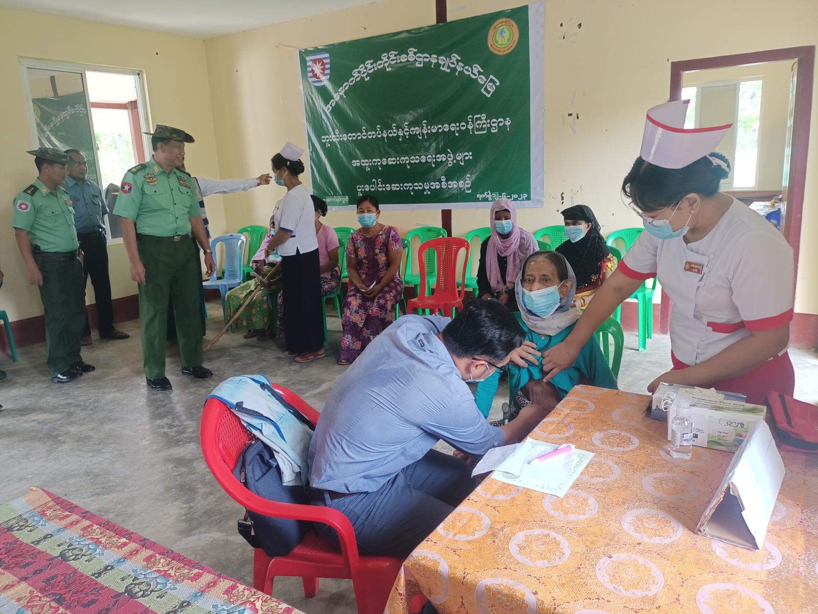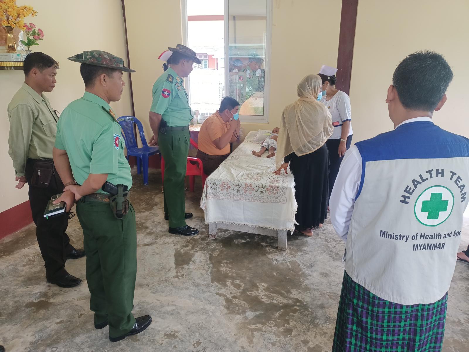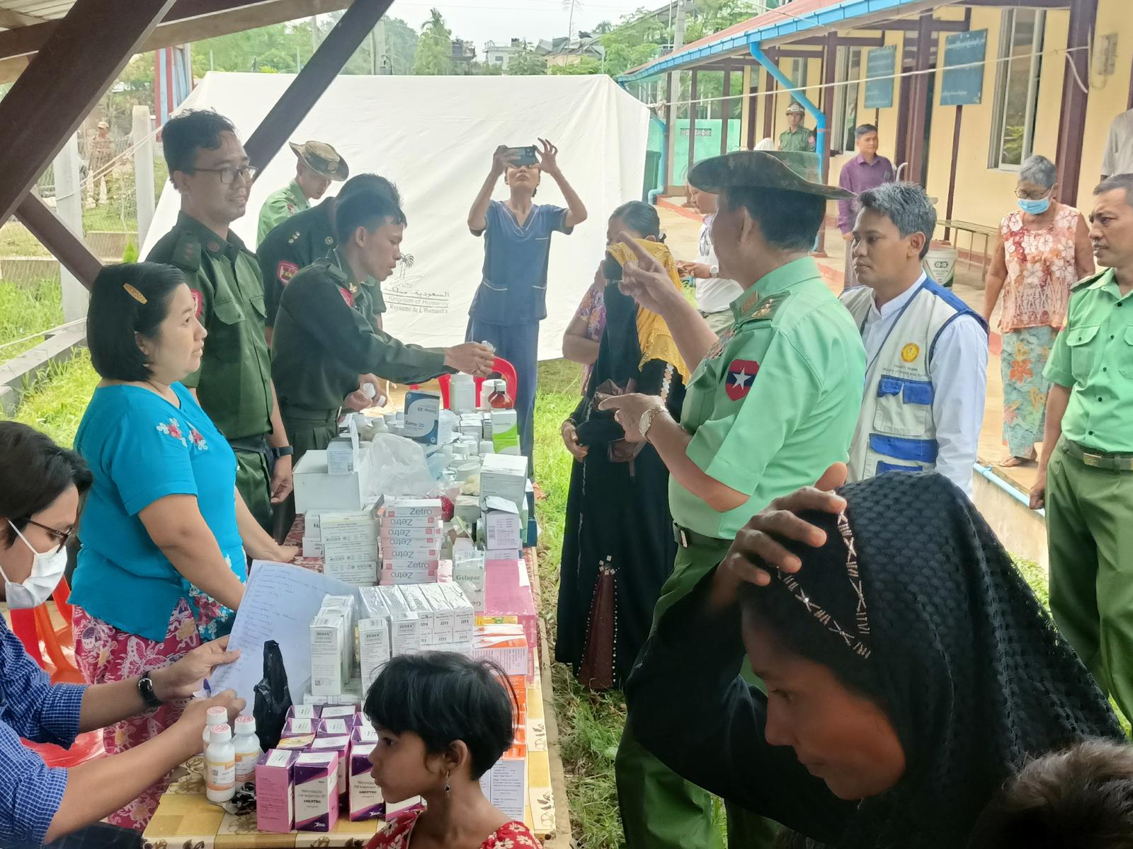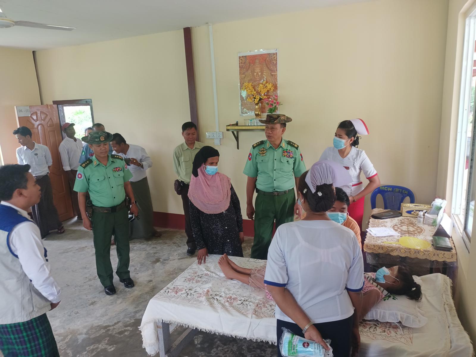 ရခိုင်ပြည်နယ်၊ မောင်တောခရိုင်၊ ဘူးသီးတောင်မြို့နယ်အတွင်း ပြန်လည်ထူထောင်ရေးလုပ်ငန်းများဆောင်ရွက်ရန်ရောက်ရှိနေသော ဒုတိယဗိုလ်ချုပ်ကြီးအေးဝင်းနှင့်တာဝန်ရှိသူများသည် ယမန်နေ့နံနက်(၉)အချိန်က ဘူးသီးတောင်မြို့ တောင်ရပ်ကွက်ရှိမိခင်နှင့် ကလေး စောင့်ရှောက်ရေးအသင်းဆေးခန်း၌ မိုခါမုန်တိုင်းကြောင်း ပြည်သူ့ကျန်းမာရေး အထောက်အကူပြု လုပ်ငန်းများဆောင်ရွက်နိုင်ရန် ကျန်းမာရေးဝန်ကြီးဌာနမှ စေလွှတ်သောကလေး အထူးကုဆရာဝန်ဦးဆောင်သောအဖွဲ့၊ ဘူးသီးတောင်တပ်နယ်မှ အထူးကု ဆေးကုသရေးအဖွဲ့၊ ဘူးသီးတောင်မြို့ ကျန်းမာရေးဦးစီးဌာနမှ အထူးကုဆရာဝန်များအဖွဲ့တို့နှင့်နယ်လှည့်ဆေး ကုသရေးအဖွဲ့တို့ ပူးပေါင်းကာ မြို့ပေါ်ရပ်ကွက်ရှိ ပြည်သူလူထုများအား (အခမဲ့)ကျန်းမာရေး စောင့်ရှောက်ပေးနေမှုတို့အား သွားရောက်ကြည့်ရှုပြီး ဆေးကုသနေသည့်ပြည်သူများအား အားပေးစကားများပြောကြားခဲ့ကြောင်း သိရသည်။