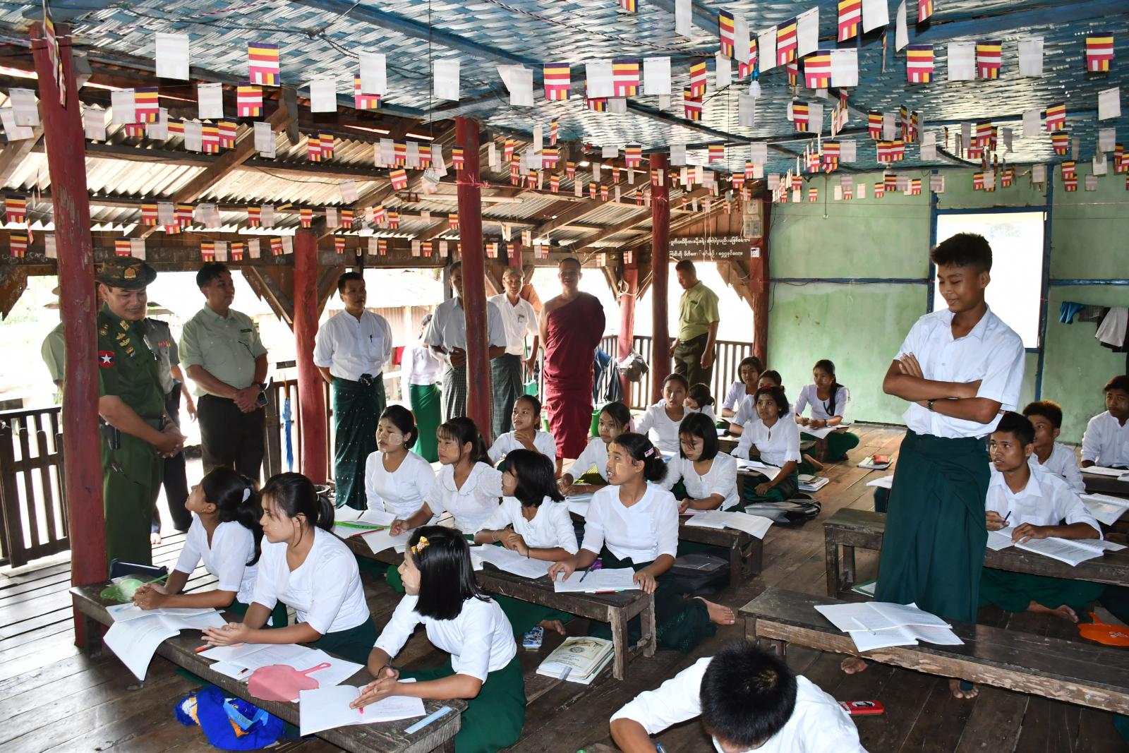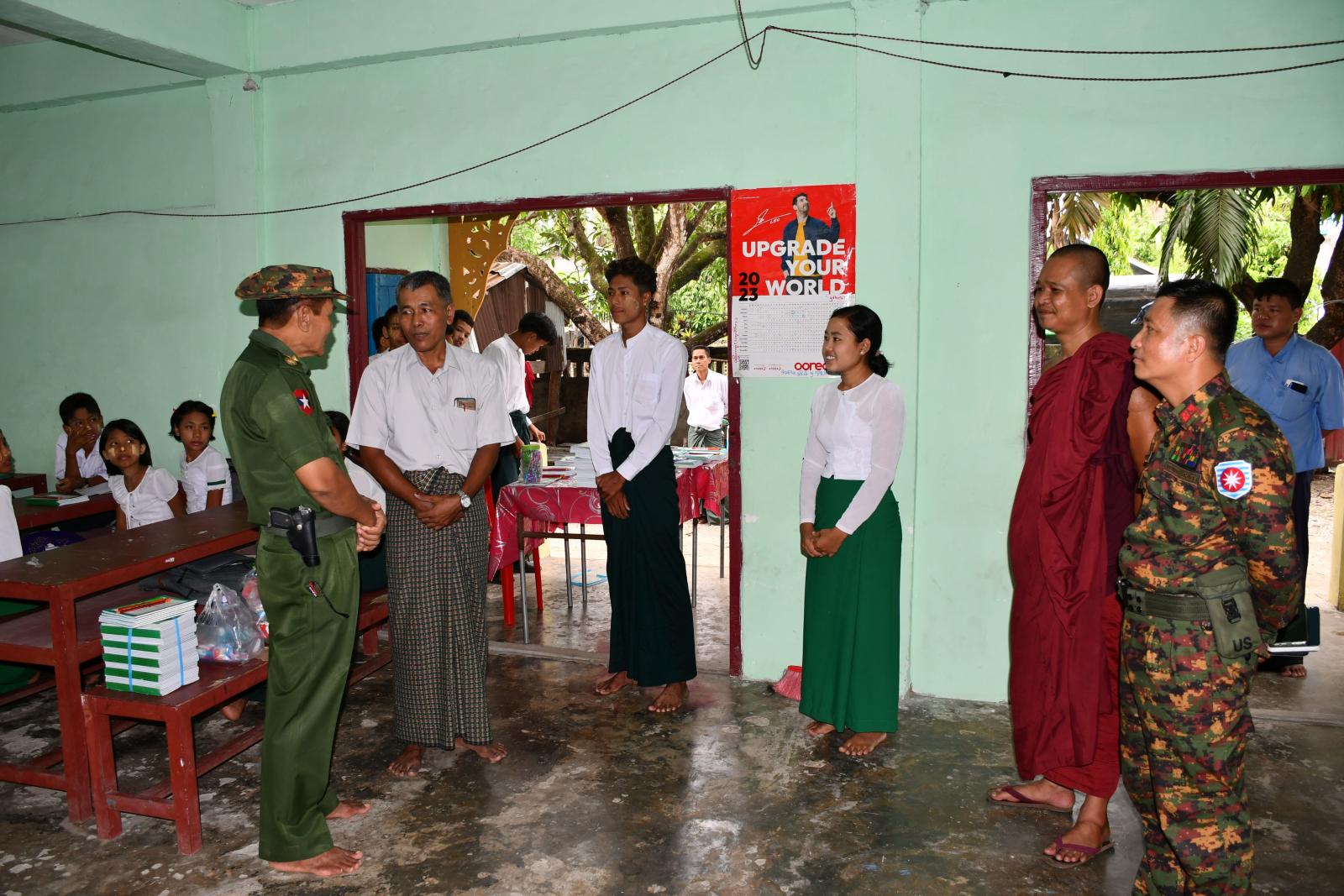ဒုတိယဗိုလ်ချုပ်ကြီးလူအေးနှင့် တာဝန်ရှိသူများသည် ခရိုင်သဘာဝဘေးအန္တရာယ်စီမံခန့်ခွဲမှု ကော်မတီဝင်များနှင့်အတူ ယမန်နေ့နံနက်ပိုင်းက ကျောက်ဖြူမြို့ရှိ ဘုန်းတော်ကြီးသင်ပညာရေးကျောင်းများမှ ကျောင်းသား၊ကျောင်းသူများအား ကျောင်းသုံးစာအုပ်နှင့် စာရေးကိရိယာများ လှူဒါန်းခဲ့သည်။