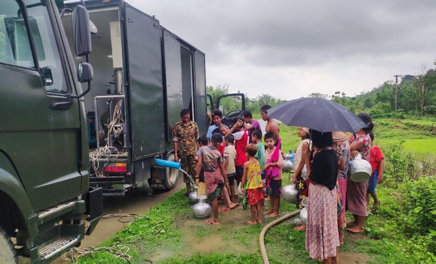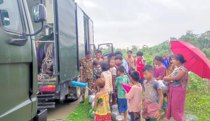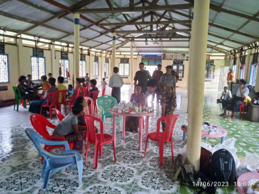 ထိုနောက် သာစည်ကျေးရွာ ဘုန်းတော်ကြီးကျောင်းတိုက်တွင် အခြေပြု၍ တပ်မတော်အင်အားဖြည့်တင်းရေးညွှန်ကြားရေးမှူးရုံးမှ ဒုတိယဗိုလ်မှူးကြီး ရဲထွန်းဝင်း ဦးစီး၍ အနောက်ပိုင်းတိုင်းစစ်ဌာနချုပ်၊ နယ်လှည့်ဆေးကုသရေးအဖွဲ့မှ ပါရဂူဗိုလ်ကြီး ဝေတိုးသူ ဦးဆောင်သော နယ်လှည့်ဆေးကုသရေးအဖွဲ့က ဒေသခံကျေးရွာသားများအား အခမဲ့ ကျန်းမာရေးစောင့်ရှောက်ပေးခြင်းနှင့် ကျေးရွာသားများ သန့်ရှင်းသော သောက်သုံးရေများ လုံလောက်စွာရရှိနိုင်ရေးအတွက် ဂါလံ(၂၀၀၀)ဆံ့ တပ်မတော်ရေသန့်စင် မော်တော်ယာဉ်ဖြင့် သောက်ရေသန့်များ ထုတ်လုပ်ဖြန့်ဝေပေးနေမှုတို့ကို ဗိုလ်မှူးချုပ်ဝင်းမောင်နှင့်တာဝန်ရှိသူတို့ လာရောက်ကြည့်ရှုအားပေးကာ ကျေးရွာအတွင်း မုန်တိုင်းဒဏ်ကြောင့် ပျက်စီးဆုံးရှုံးခဲ့သည့် စာသင်ကျောင်းဆောင်များအား လှည့်လည်ကြည့်ရှုစစ်ဆေးခဲ့ကြပြီး လိုအပ်သည်များကို တာဝန်ရှိသူများနှင့်ပေါင်းစပ်ညှိနှိုင်း ဆောင်ရွက်ပေးခဲ့ ကြောင်းသိရသည်။