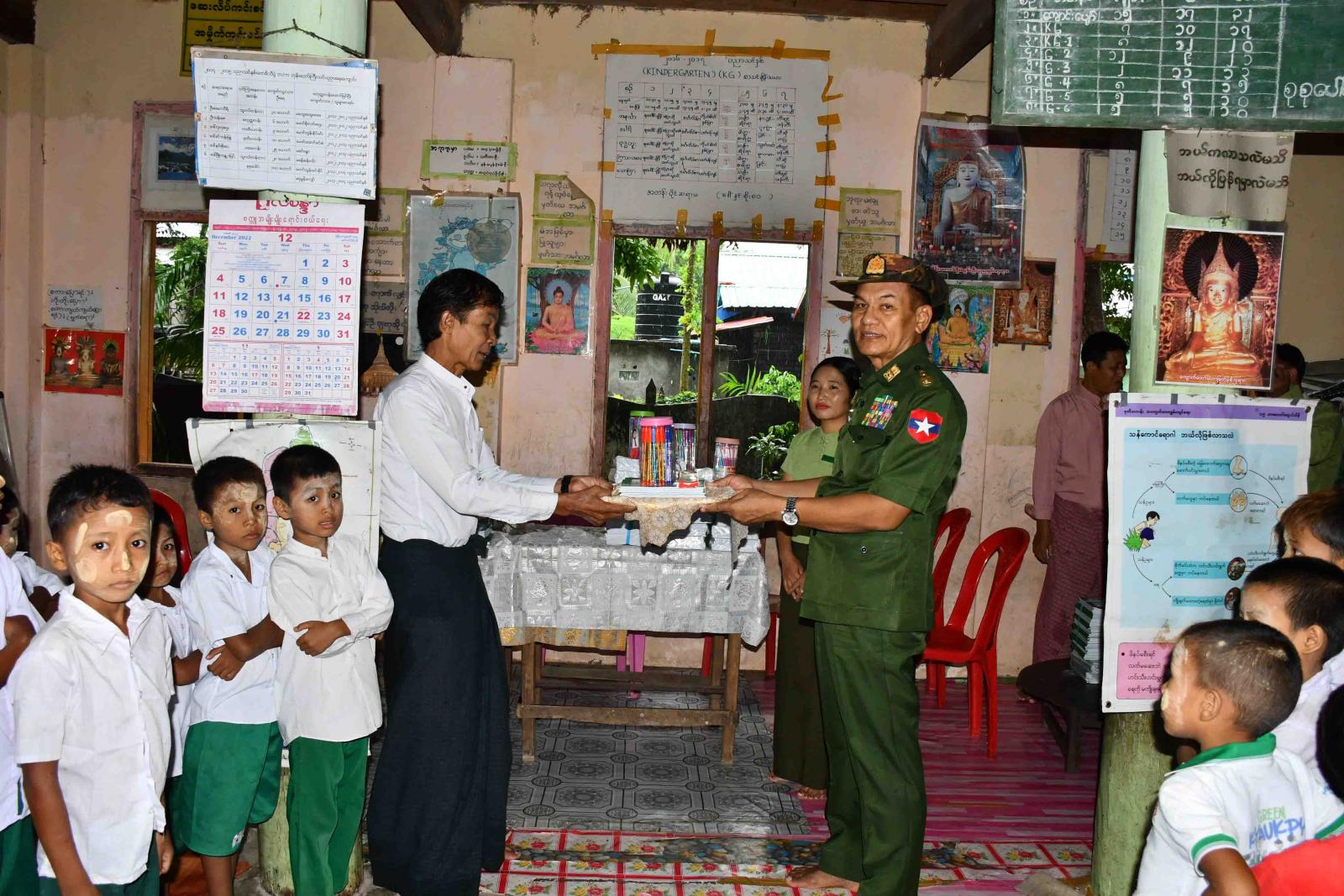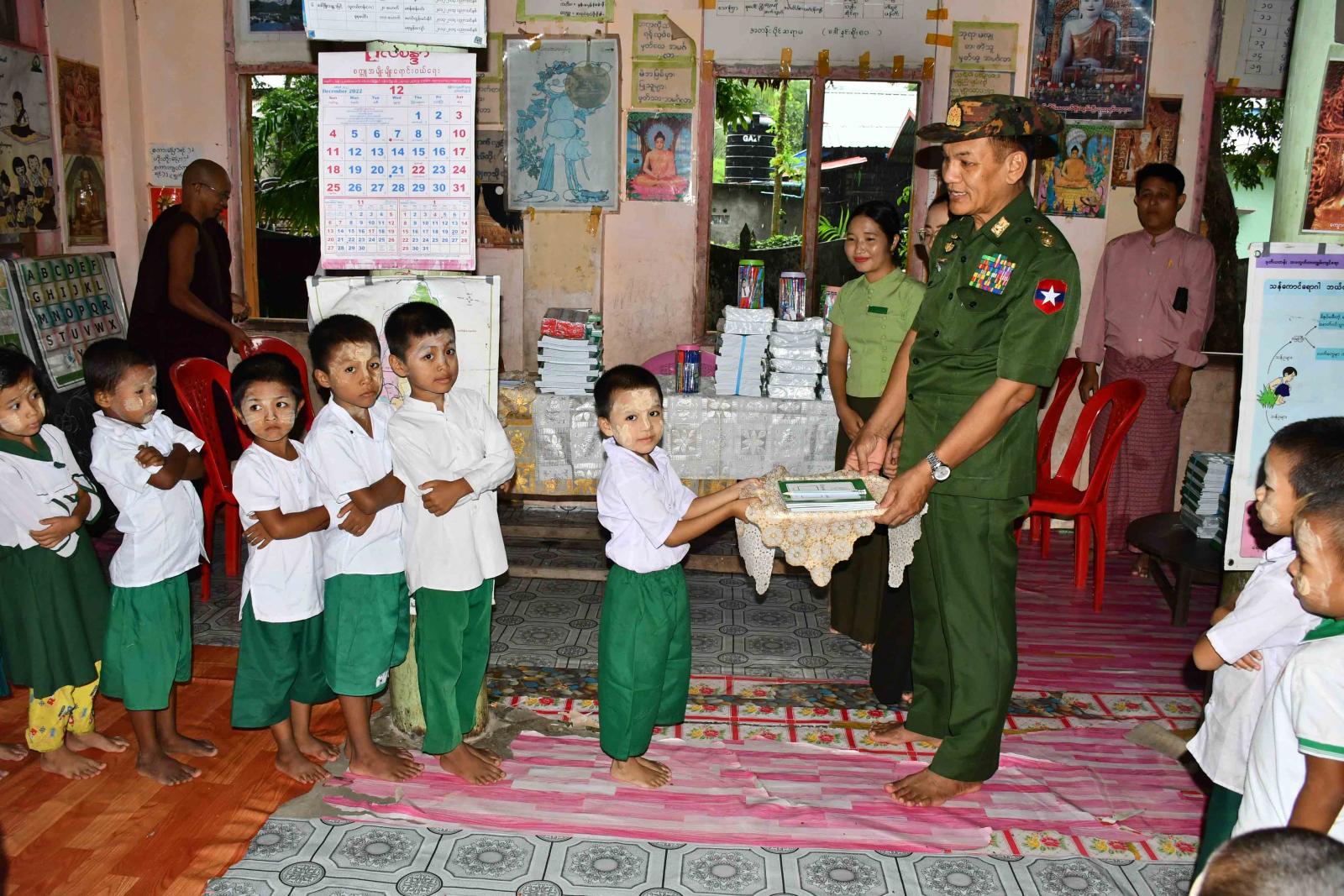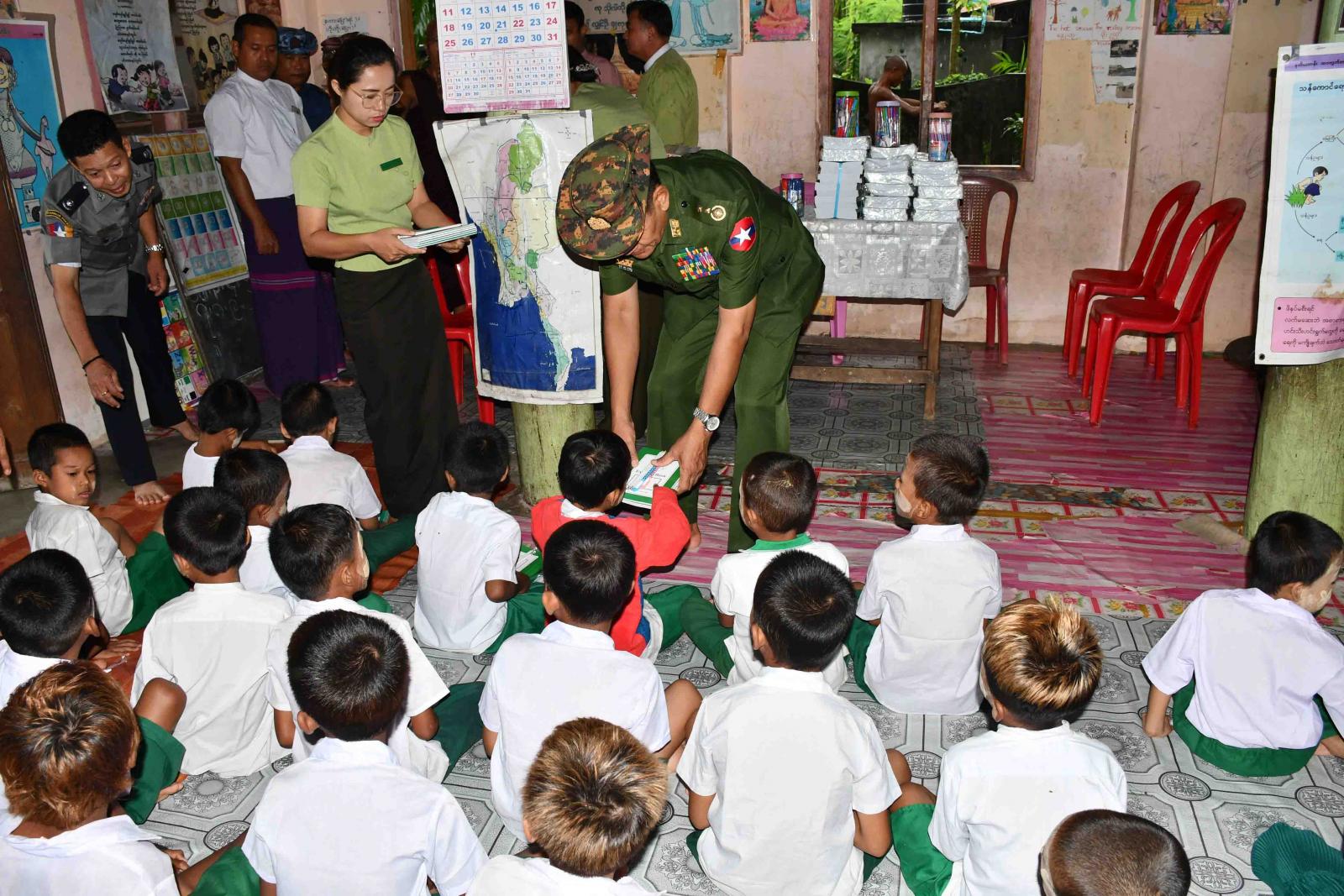 ဒုတိယဗိုလ်ချုပ်ကြီးလူအေးနှင့် တာဝန်ရှိသူများသည် ခရိုင်/မြို့နယ်သဘာဝဘေးအန္တရာယ်စီမံခန့်ခွဲမှု ကော်မတီဝင်များနှင့်အတူ ယနေ့နံနက်ပိုင်းက ကျောက်ဖြူမြို့ရှိ ဘုန်းတော်ကြီးသင် ပညာရေးကျောင်းနှစ်ကျောင်းမှ ကျောင်းသား၊ ကျောင်းသူများအား ကျောင်းသုံးစာအုပ်နှင့် စာရေးကိရိယာများ လှူဒါန်းခဲ့ပြီး မြို့ရေစီးရေလာ ကောင်းမွန်စေရေး ရေနုတ်မြောင်းများ ပြန်လည်တူးဖော်နေမှုအား ကြည့်ရှုစစ်ဆေးသည်။