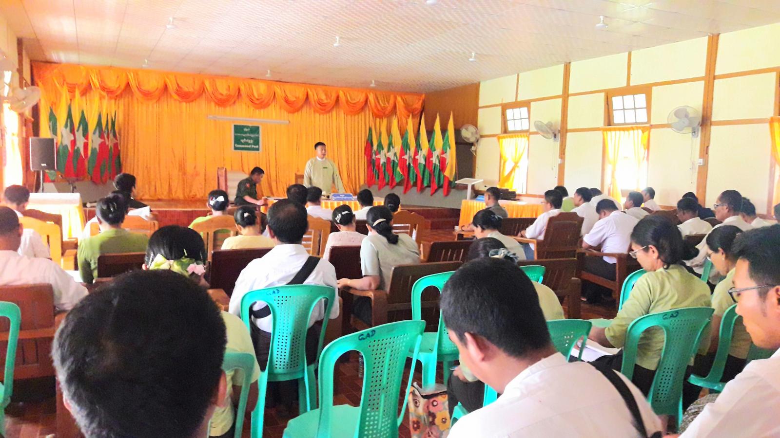 ရခိုင်ပြည်နယ်၊ သံတွဲခရိုင်၊ ဂွမြို့နယ်တွင် မြို့နယ်အဆင့်ဌာနဆိုင်ရာများ၊ ရပ်/ကျေးအုပ်ချုပ်ရေးမှူးများနှင့် စာရေးများ၏ လုပ်ငန်းညှိနှိုင်း အစည်းအဝေးကို ယနေ့နံနက်(၁၀)နာရီ အချိန်က မြို့နယ်အထွေထွေအုပ်ချုပ်ရေးဦးစီးဌာန၊ အစည်းအဝေးခန်းမ၌ ကျင်းပပြုလုပ်ခဲ့သည်။