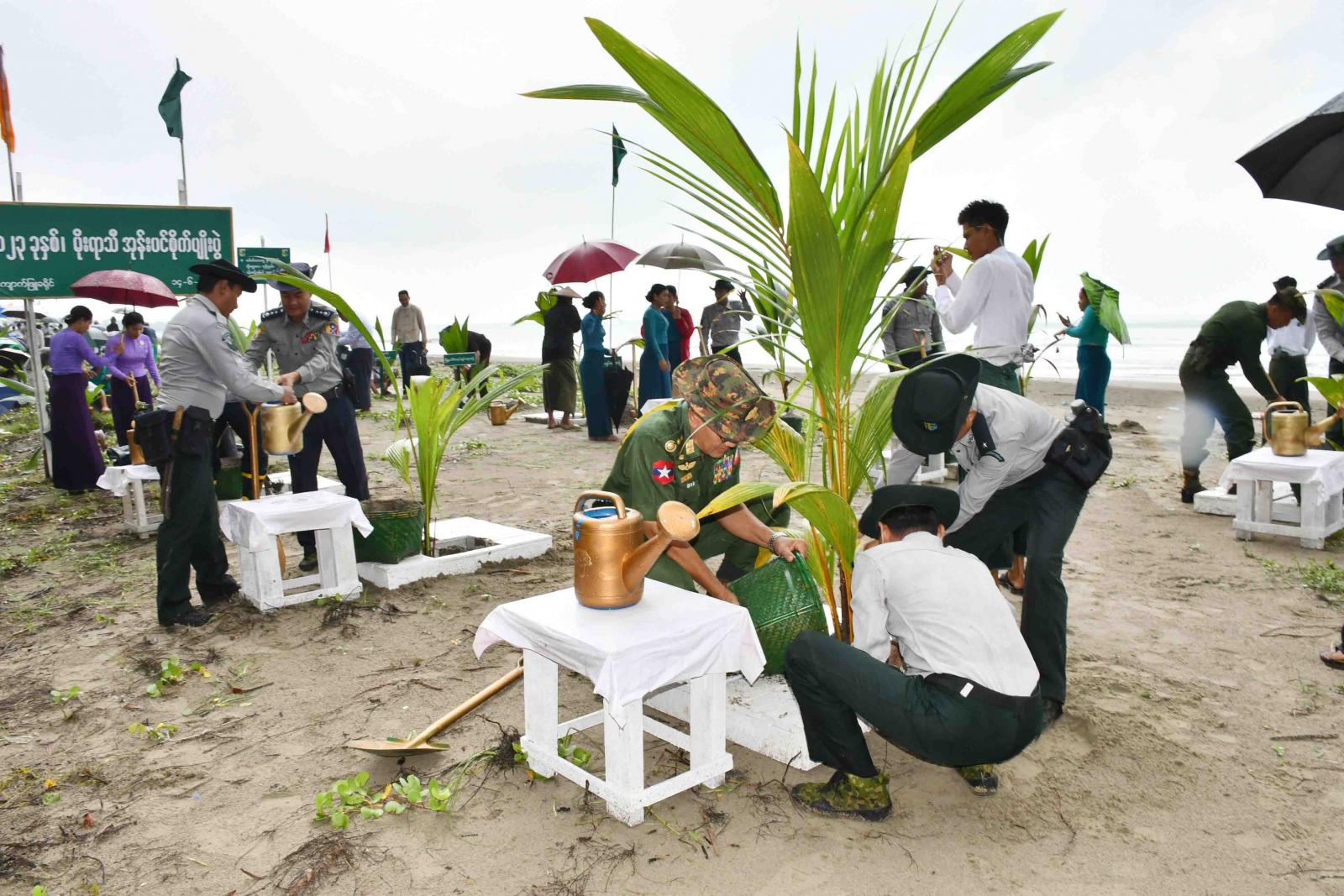 ဒုတိယဗိုလ်ချုပ်ကြီး လူအေးနှင့်တာဝန်ရှိသူများသည် ခရိုင်/မြို့နယ် စီမံအုပ်ချုပ်ရေးအဖွဲ့ဝင်များနှင့်အတူ ယနေ့နံနက်ပိုင်းက ကျောက်ဖြူမြို့အဝင် ပင်လယ်ကမ်းခြေနေရာ၌ ကျင်းပပြုလုပ်သည့် မိုးရာသီ အုန်းပင်စိုက်ပွဲတော်အခမ်းအနားသို့ တက်ရောက်ခဲ့ပြီး သဘာဝ ဘေးအန္တရာယ် ကူညီကယ်ဆယ်ရေးအဖွဲ့ (၆)မှ ဒေသခံပြည်သူများကို အခမဲ့ကျန်းမာရေးစောင့်ရှောက်ပေးနေမှုအား သွားရောက်ကြည့်ရှု အားပေးသည်။