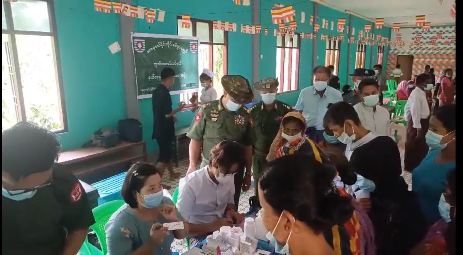ရခိုင်ပြည်နယ်၊ မောင်တောခရိုင်၊ ဘူးသီးတောင်မြို့နယ်အတွင်း ပြန်လည်ထူထောင်ရေးလုပ်ငန်းများ ဆောင်ရွက်ရန်ရောက်ရှိနေသော ဒုတိယဗိုလ်ချုပ်ကြီးအေးဝင်းနှင့် တာဝန်ရှိသူများသည် ယမန်နေ့နံနက်(၉)နာရီအချိန်က ဘူးသီးတောင်မြို့ မြို့မရပ်ကွက်၊ လမ်းမဘုန်းတော်ကြီးကျောင်း၌ မိုခါမုန်တိုင်းကြောင့် ပြည်သူ့ကျန်းမာရေး အထောက်အကူပြုလုပ်ငန်းများ ဆောင်ရွက်နိုင်ရန်အတွက် ကျန်းမာရေးဝန်ကြီးဌာနမှ စေလွှတ်သောကလေးအထူးကုဆရာဝန်ကြီး ဦးဆောင်သောအဖွဲ့၊ ဘူးသီးတောင် တပ်နယ်မှ အထူးကုဆေးကုသရေးအဖွဲ့၊ ဘူးသီးတောင်မြို့ ကျန်းမာရေးဦးစီးဌာနမှ အထူးကုဆရာဝန်များအဖွဲ့တို့နှင့် နယ်လှည့်ဆေးကုသရေး အဖွဲ့တို့ပူးပေါင်းကာ မြို့ပေါ်ရပ်ကွက်ရှိပြည်သူလူထုများနှင့် ခေတ္တယာယီနေရပ် တိမ်းရှောင်နေသူများအား (အခမဲ့)ကျန်းမာရေး စောင့်ရှောက်ပေးနေမှုတို့အား သွားရောက်ကြည့်ရှုပြီး ဆေးကုသနေသည့်ပြည်သူများအား အားပေးစကားများပြောကြားကာ ခေါက်ဆွဲခြောက်များပေးအပ်ခဲ့ကြောင်း သိရှိရသည်။