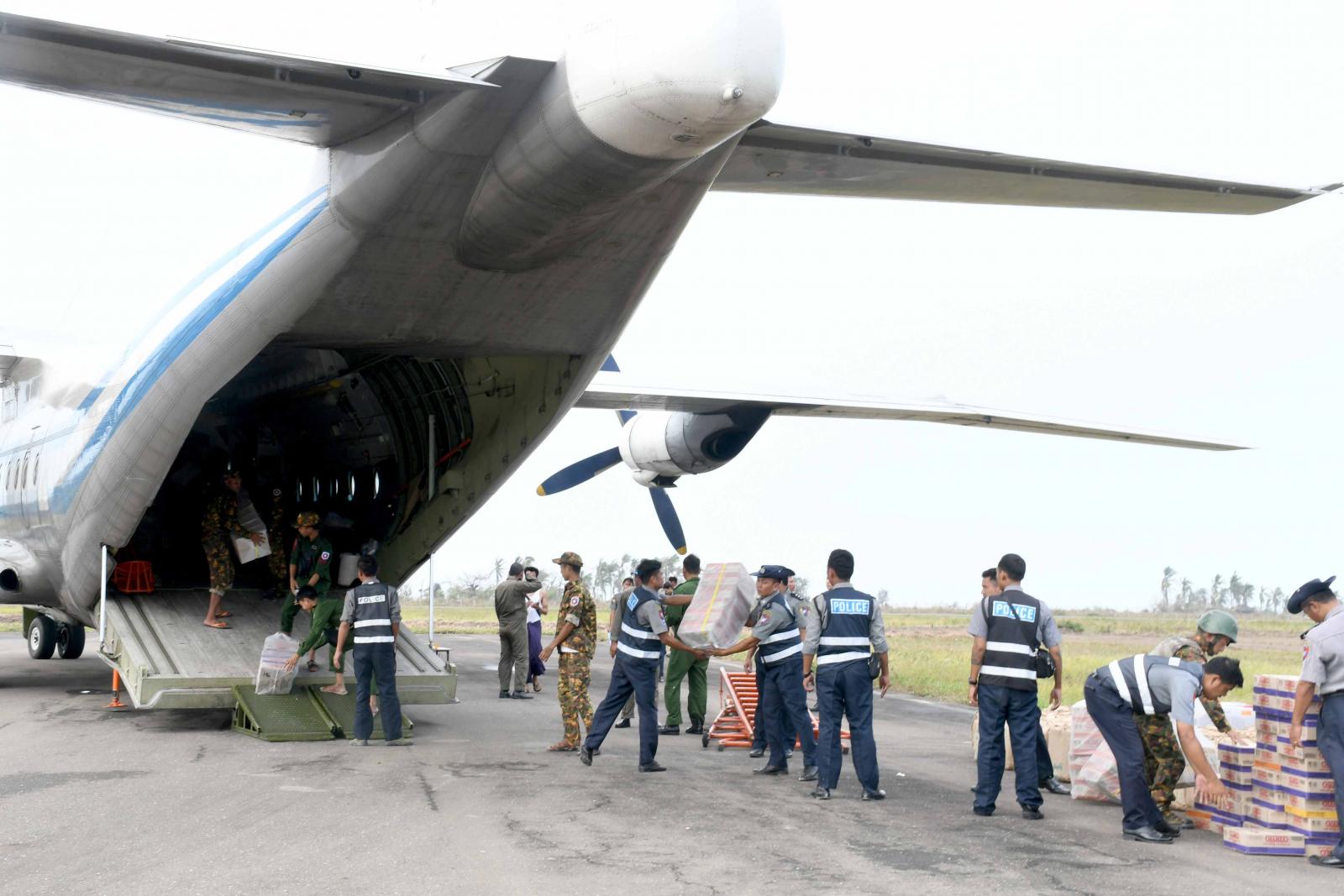 ဖြေ။ ။ ကျွန်တော်တို့ကတော့ သင်္ဘောတွေဆိပ်ကပ်လာတဲ့အခါ ပါလာတဲ့ ဆောက်လုပ်ရေးသုံးပစ္စည်းတွေ၊ လူသုံးကုန်ပစ္စည်းတွေ၊ သစ်လုပ်ငန်းက ပို့ပေးတဲ့သစ်တွေ၊ သွပ်တွေ၊ ဆန်တွေ၊ ရေသန့်တွေနဲ့ စားသောက် ကုန်တွေကို သင်္ဘောပေါ်ကနေ၊ ကားတွေ၊ ကမ်းထိုးရေ ယာဉ်တွေကို အတင်အချပြုလုပ်ပေးပါတယ်၊ နောက်ပြီး တော့ မုန်တိုင်းသင့်မြို့နယ်တွေဖြစ်တဲ့ စစ်တွေ၊ ရသေ့တောင်၊ ဘူးသီးတောင်၊ မောင်တော၊ ပေါက်တော၊ မင်းပြား၊ မြေပုံ၊ ကျောက်တော်၊ မြောက်ဦး၊ ပုဏ္ဏားကျွန်းမြို့နယ်တွေကို အချိန်မီ အမြန်ဆုံးဖြန့်ဖြူးနိုင်အောင် လုပ်ဆောင်ပေးနေပါတယ်ခင်ဗျာ။ ဆန်နဲ့ စားသောက်ကုန်တွေအနေနဲ့ကတော့ သင်္ဘောတိုင်းလိုလိုမှာ ပါတဲ့အတွက် ဆန်တွေကိုတော့ အချိန်မီရောက်ရှိအောင် တပ်မတော်က ကမ်းထိုးရေယာဉ်တွေနဲ့ပို့ ပေးနေပါတယ်။