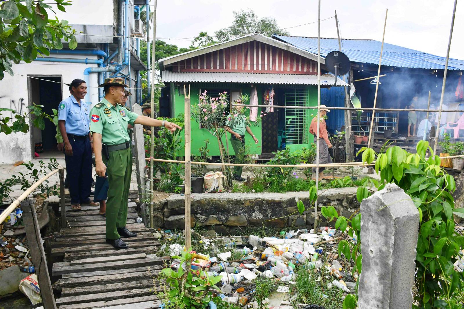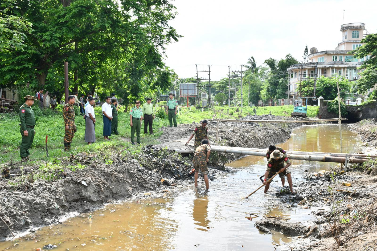 ရှေးဦးစွာ ဒုတိယဗိုလ်ချုပ်ကြီး လူအေးနှင့်တာဝန်ရှိသူများသည် ကျောက်ဖြူမြို့ အစိုးရရပ်ကွက်ရှိ ရေနုတ်မြောင်း ရေစီးရေလာကောင်းမွန်စေရေးအတွက် အဆိုပါရေနုတ်မြောင်းအတွင်းရှိ ပိတ်ဆို့နေသော စွန့်ပစ်အမှိုက်များအား ယန္တရားများ၊ သဘာဝဘေးအန္တရာယ် ကူညီကယ်ဆယ်ရေးအဖွဲ့၊ အမှတ်(၆) အရာရှိ၊ စစ်သည်များမှ ပြန်လည်တူးဖော်နေမှုအားလည်းကောင်း၊ သန်ပန်ချောင်းရပ်ကွက်ရှိ ရေနုတ်မြောင်းများအတွင်း အမှိုက်များပိတ်ဆို့နေမှုအား အမြန်ဆုံးပြန်လည်တူးဖော်နိုင်ရေးနှင့် ပင်လယ်အတွင်း ပလပ်စတစ်စွန့်ပစ်အမှိုက်များ မရောက်ရှိစေရေး၊ သဘာဝပတ်ဝန်းကျင် ထိခိုက်မှုလျော့နည်းစေရေးအတွက် ရေနုတ်မြောင်းများ ပြန်လည်တူးဖော်မည့်နေရာများကို သွားရောက်ကြည့်ရှုစစ်ဆေးပြီး စွန့်ပစ်အမှိုက်များအား စနစ်တကျစွန့်ပစ်စေရေး ညှိနှိုင်းဆောင်ရွက်ပေးပြီး တာဝန်ရှိသူများကို လိုအပ်သည်များ လမ်းညွှန်မှာကြားသည်။