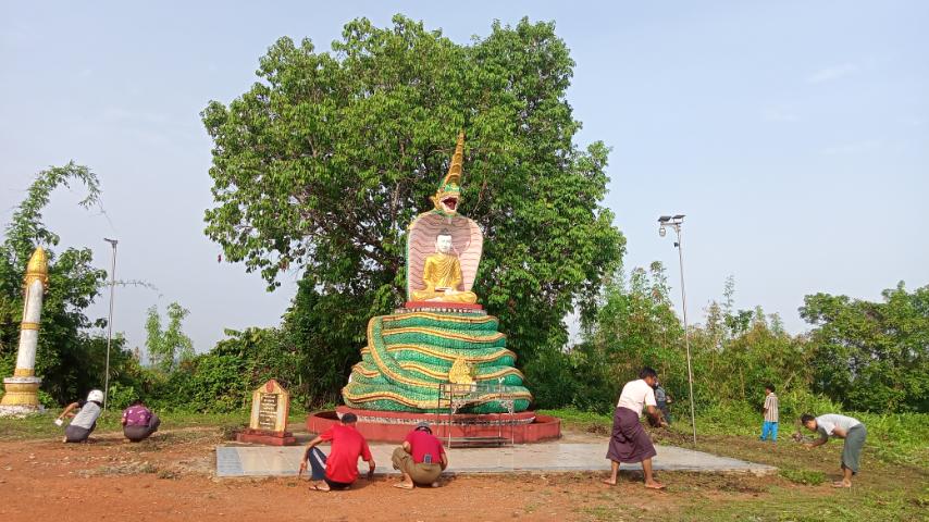 ရခိုင်ပြည်နယ်၊ အမ်းမြို့နယ် အောက်ရွာကျေးရွာအုပ်စု (၁)မိုင်ကုန်းရှိ သဗ္ဗဇေယျမုနိ ဘုရားကြီးပုရဝုဏ်အတွင်း ပေါင်းမြက်များ ခုတ်ထွင် ရှင်းလင်းခြင်းနှင့် အမှိုက်ကောက်ခြင်းကို ယနေ့နံနက်ပိုင်းက ခရိုင်/မြို့နယ်အဆင့်ဌာနဆိုင်ရာများစုပေါင်း၍ဆောင်ရွက်ကြောင်း သိရသည်။