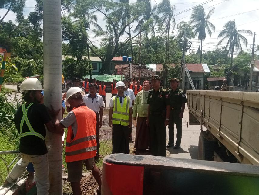ရခိုင်ပြည်နယ်၊ မြောက်ဦးမြို့နယ် ပြန်လည်ထူထောင်ရေးလုပ်ငန်းတာဝန်ခံ ဗိုလ်ချုပ် သောင်းထိုက်ရွှေနှင့် တာဝန်ရှိသူများသည် ယနေ့နံနက် (၁၀) နာရီခွဲအချိန်က မြောက်ဦးမြို့နယ် အတွင်း မြို့တွင်းတယ်လီဖုန်း ကွန်ကရစ်တိုင်များ စိုက်ထူဆောင်ရွက်နေမှုများကို ကြည့်ရှု အားပေးခဲ့ကြောင်း သိရသည်။