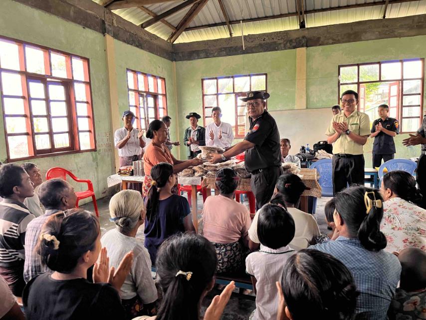 ထို့နောက် ဌာနဆိုင်ရာ ပူးပေါင်းအဖွဲ့သည် သင်္ကန်း(၂)စုံ၊ ငါးသေတ္တာဘူး(၂၀၀)ဘူး၊ ကော်ဖီမစ်(၁၂)ထုတ်၊ ငါးခြောက်(၁)အိတ်တို့အား ကျေးရွာသူ၊ ကျေးရွာသား များအား ထောက်ပံပေးအပ်ခဲ့ကြကြောင်း သိရသည်။