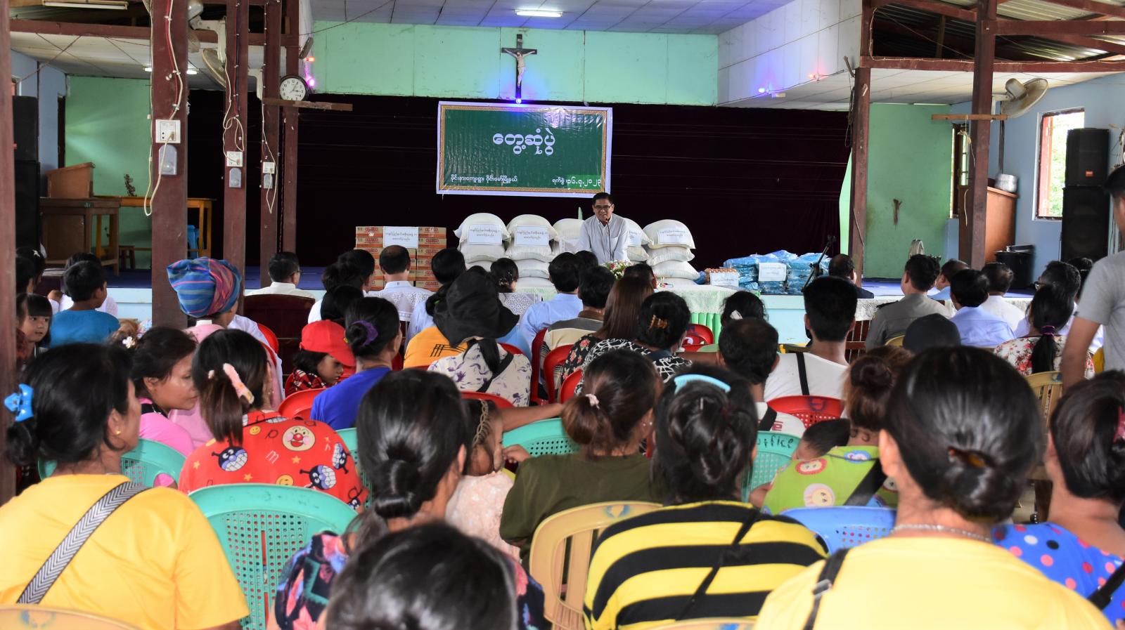 ထို့နောက် ပြည်နယ်ဝန်ကြီးချုပ်၊ ပြည်နယ်တရားလွှတ်တော် တရားသူကြီးချုပ်နှင့် ပြည်နယ်ဝန်ကြီး များက အိမ်ထောင်စုများအတွက် ဆန်အိတ်(၂၀)၊ ခေါက်ဆွဲခြောက်ဖာ(၂၀)၊ ကြက်ဥအလုံး (၂၀၀)တို့ နှင့် ကျောင်းသား/ ကျောင်းသူများအတွက် ကျောပိုးအိတ်၊ ဗလာစာအုပ်နှင့် စာရေးကိရိယာများ၊ အခြေခံပညာ မူလတန်းကျောင်း ဆရာ/ဆရာမ (၈)ဦးတို့အတွက် ထောက်ပံ့ငွေကျပ် ၈ သိန်း၊ ဆန်အိတ် ၈ အိတ်တို့ကို အသီးသီးထောက်ပံ့ပေးအပ်ရာ နန်ဆန်ယန်ပြည်သူများ ကိုယ်စား ဒေသခံတစ်ဦးက ကျေးဇူးတင်စကား ပြန်လည်ပြောကြားပြီး ရပ်မိ/ရပ်ဖ ဦးဖော်လားဂမ်ဖန်နှင့် ကသလစ်ဘုန်းတော်ကြီး ဖာသာယုံဝါတို့က အားပေး စကားပြောကြားကာ ဆုတောင်းဆက်ကပ်ပေးသည်။