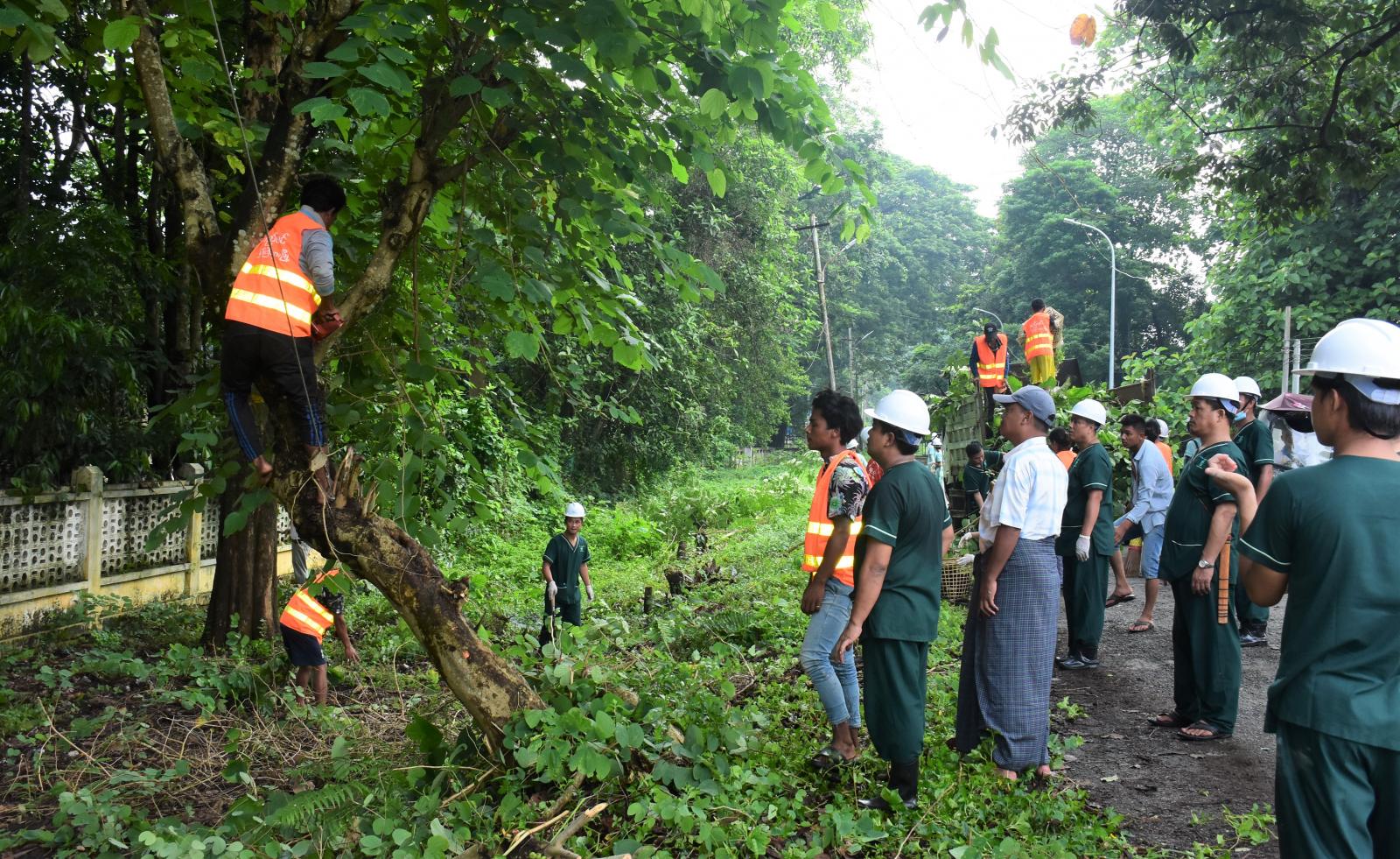 အလားတူ ပြည်နယ်ဝန်ကြီးချုပ်သည် မြစ်ကြီးနားမြို့ သန့်ရှင်းသာယာလှပလာစေရေးနှင့် လူနေပတ်ဝန်းကျင်စနစ်ကျောင်းများ ဖြစ်ပေါ်လာစေရေးအတွက် Kachin State Clean & Green Team ဖွဲ့စည်းပြီး မြို့နယ်စည်ပင်သာယာရေးအဖွဲ့ ဝန်ထမ်းများနှင့် အတူ အပတ်စဉ် တနင်္လာနေ့မှ စနေနေ့ အထိ သန့်ရှင်းရေး ဆောင်ရွက်လျက်ရှိရာ ယမန်နေ့ နံနက် (၇)နာရီခွဲက ပြည်နယ်သယံဇာတရေးရာ ဝန်ကြီး ဦးတိန့်ဆောင်နှင့် အတူ မြစ်ကြီးနားမြို့ ဆမားလမ်းနှင့် ဇော်ဂျွန်း လမ်းဆုံနေရာမှ ဇော်ဂျွန်းလမ်းတစ်လျှောက် ဘေးဝဲ/ယာတို့တွင် သစ်ပင်ခြုံနွယ်များ ခုတ်ထွင်ရှင်းလင်းခြင်း၊ အမှိုက်များ ကောက်ယူခြင်းတို့ကို စုပေါင်း ဆောင်ရွက်ခဲ့ကြကြောင်း သိရသည်။