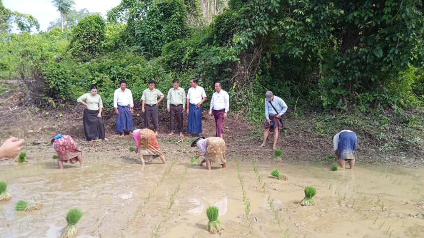 ရခိုင်ပြည်နယ်၊ တောင်ကုတ်မြို့နယ်၊ မအီမြို့တွင် ကျေးရွာအုပ်စုများအတွင်း စိုက်ပျိုးသီးနှံ ထုတ်လုပ်မှု တိုးတက်မြင့်မားစေရေး၊ ၂၀၂၃ ခုနှစ်၊ မိုးရာသီတွင် လယ်ယာမြေများ အချိန်မီထွန်ယက်ပြီး ရာနှုန်းပြည့်စိုက်ပျိုးနိုင်ရေးနှင့် စပါးအထွက်နှုန်း တိုးတက်မြင့်မားရေးအတွက် စိုက်ပျိုးရေး ကြီးကြပ်အဖွဲ့မှ မအီမြို့၊ လက်ပံကျေးရွာရှိ အကျိုးဆောင် တောင်သူများနှင့်တွေ့ဆုံ၍ ကွင်းဆင်းကြီးကြပ်ဆောင်ရွက်ခြင်းကို ယနေ့နံနက်ပိုင်းက ဆောင်ရွက်ခဲ့ကြကြောင်းသိရသည်။