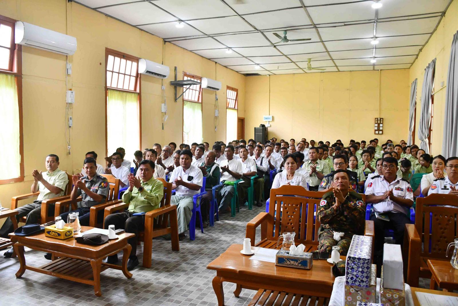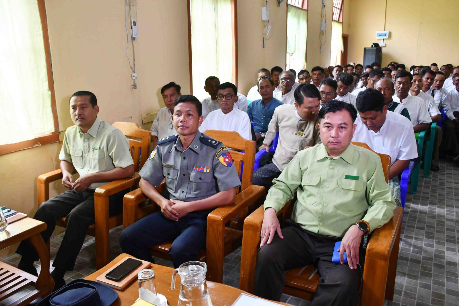 ယင်းနောက် ကျောက်ဖြူမြို့နယ်၌ မိုခါမုန်တိုင်းအပြီး ပြန်လည်ထူထောင်ရေးလုပ်ငန်းများနှင့် ပတ်သက်၍ ခရိုင်စီမံအုပ်ချုပ်ရေးအဖွဲ့ ဥက္ကဋ္ဌမှ ကျောက်ဖြူမြို့နယ်၌ ဆောင်ရွက်ထားရှိသည့် စိုက်ပျိုးရေး၊ မွေးမြူရေး ကဏ္ဍများနှင့် ပတ်သက်၍လည်းကောင်း၊ မြို့နယ်စီမံအုပ်ချုပ်ရေးအဖွဲ့ ဥက္ကဋ္ဌမှ မြို့နယ်အတွင်း ဆောင်ရွက်ထားရှိသည့် လုပ်ငန်းကိစ္စ အရပ်ရပ်များနှင့် ပတ်သက်၍လည်းကောင်း၊ မြို့နယ်စိုက်ပျိုးရေး ဦးစီးဌာနမှ မိုးစပါးစိုက်ပျိုးရာသီတွင် စိုက်ပျိုးရေးလုပ်ငန်းများနှင့်ပတ်သက်၍လည်းကောင်း၊ မြို့နယ် လယ်ယာမြေစီမံခန့်ခွဲရေးနှင့် စာရင်းအင်းဦးစီးဌာနမှ လယ်ယာမြေဥပဒေ၊ မြေယာ ကိစ္စရပ်များနှင့် ပတ်သက်၍လည်းကောင်း၊ မွေးမြူရေးနှင့်ကုသရေးဦးစီးဌာနမှ တိရိစ္ဆန်များကွင်းဆင်း ကုသရေးလုပ်ငန်း များနှင့် ပတ်သက်၍လည်းကောင်း၊ ငါးလုပ်ငန်းဦးစီးဌာနမှ ကမ်းနီးကမ်းဝေးငါးဖမ်း လုပ်ငန်းများနှင့် ပတ်သက်၍လည်းကောင်း၊ မြို့နယ်သစ်တောဦးစီးဌာနမှ မိုးရာသီသစ်ပင်စိုက်ပျိုးရေးကိစ္စများအား လည်းကောင်း၊ လူဝင်မှုကြီးကြပ်ရေးနှင့်ပြည်သူ့အင်အားဝန်ကြီးဌာန၊ မြို့နယ်ဦးစီးမှူးက အိမ်ထောင်စု လူဦးရေစာရင်းနှင့် ပတ်သက်၍လည်းကောင်းရှင်းလင်းတင်ပြရာ ဒုတိယဗိုလ်ချုပ်ကြီး လူအေးမှ တင်ပြချက်များအပေါ် ပေါင်းစပ်ညှိနှိုင်းဆောင်ရွက်ပေးပြီး နိဂုံးချုပ်စကားပြောကြားခဲ့ကြောင်း သိရသည်။