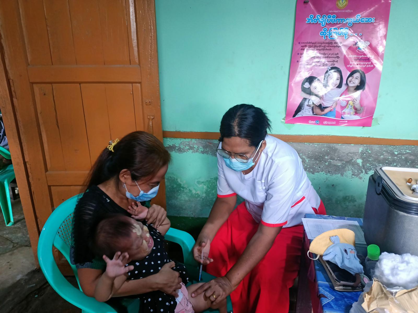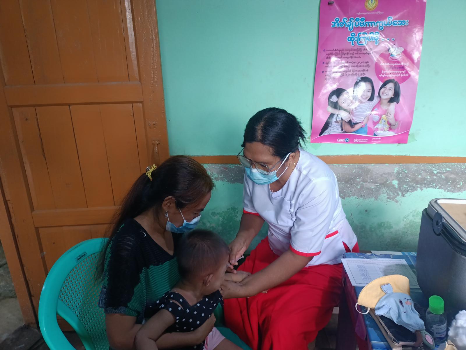 အဆိုပါ ပုံမှန်ကာကွယ်ဆေး ထိုးနှံ/တိုက်ကျွေးခြင်းများ ဆောင်ရွက်ရာတွင် မွေးစမှ အသက်တစ်နှစ်အောက် ကလေးများအား ဘီစီဂျီ၊ ပိုလီယို၊ ဆုံဆို့-ကြက်ညှာ-မေးခိုင်- အသည်းရောင်အသားဝါ(ဘီ) - ဦးနှောက်အမြှေးရောင် (ငါးမျိုးစပ်ကာကွယ်ဆေး)၊ ပိုလီယို ကာကွယ်ဆေးထိုးဆေး၊ ပြင်းထန်အဆုတ်ရောင် (ပီစီဗီ)၊ ဝက်သက် -ဂျိုက်သိုးစသည့် ကာကွယ် ဆေးများကို မွေးစ၊ အသက် (၂) လ၊ အသက် (၄) လ၊ အသက် (၆) လ၊ အသက် (၉) လနှင့် အသက်တစ်နှစ်အထိ ကလေးငယ်များအား သတ်မှတ် ဆေးထိုးရက်များအလိုက် ရပ်ကွက်/ ကျေးရွာများသို့ ကွင်းဆင်း၍ အကြိမ်ရေအလိုက် ကျန်းမာရေးဝန်ထမ်းများက ထိုးနှံပေးလျက်ရှိကြောင်း သိရသည်။