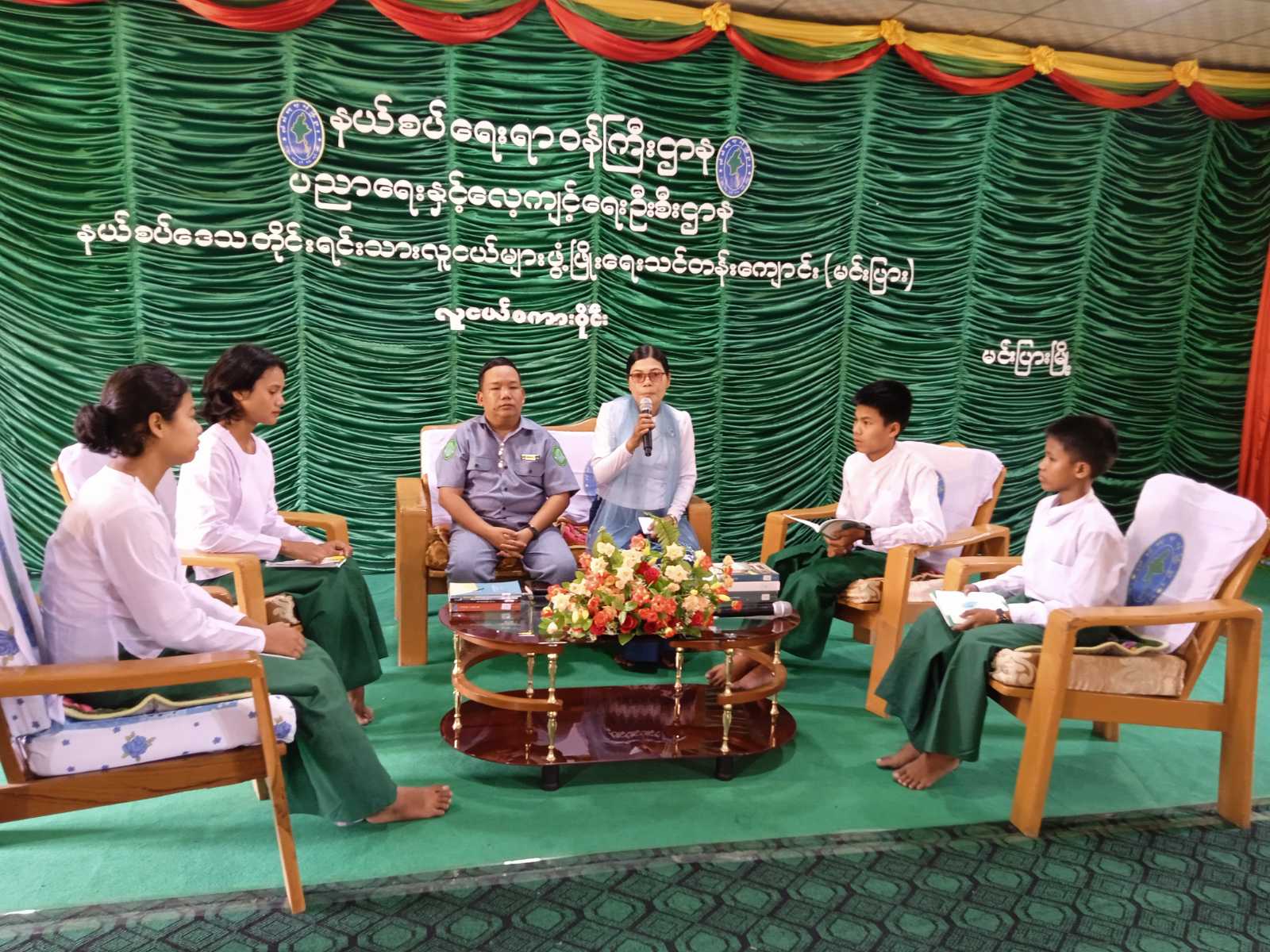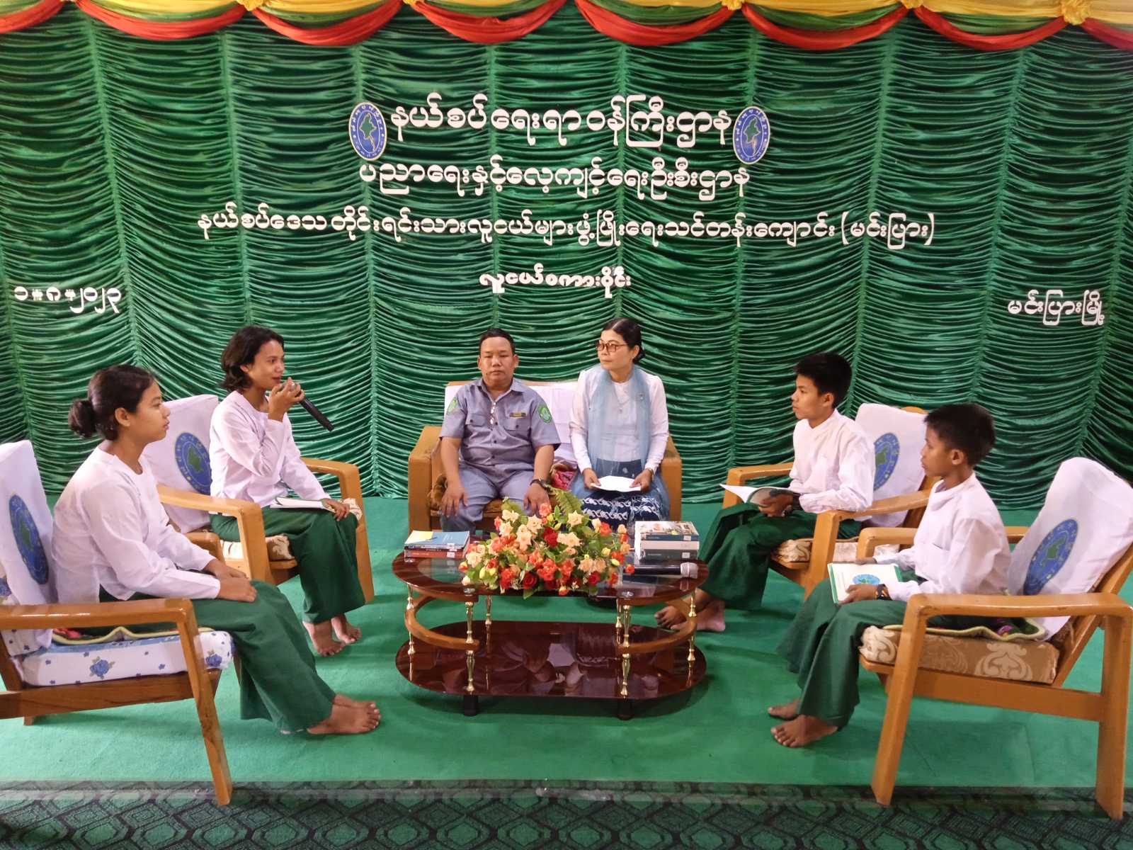 ဆက်လက်၍ နယ်စပ်ရေးရာဝန်ကြီးဌာန၊ ပညာရေးနှင့်လေ့ကျင့်ရေးဦးစီးဌာန၊ နယ်စပ်ဒေသ တိုင်းရင်းသားလူငယ်များ ဖွံ့ဖြိုးရေးသင်တန်းကျောင်း (မင်းပြား)တွင်Grade 11 သို့ တက်ရောက်နေသည့်ကျောင်းသူ မအေးမြဝေနှင့် မဖြိုးစုဝေ တို့ကပညာခေတ်တွင် ပညာ၏ အရေးပါပုံIပညာရေးနှင့် အနာဂတ်လူငယ်များ၏ ဘဝတက်လမ်း၊ယနေ့လူငယ်များ ပညာသင်ကြားနိုင်မှုအခွင့်အလမ်းနှင့် လူငယ်များ၏ ရည်မှန်း ချက်ပန်းတိုင်အကြောင်းအရာများကို လည်းကောင်း Grade 8 တွင်ပညာသင်ကြားနေသည့် မောင်ရှိန်းထက်အောင်နှင့် Grade 10 တွင် ပညာသင်ကြားနေသည့် မောင်မောင်ဇော်သိန်းတို့က လူငယ်များကျန်းမာရေး ကြံ့ခိုင်မှုကြောင့်ရရှိလာသော အကျိုးကျေးဇူးများ၊ အားကစားလုပ်ခြင်းကြောင့် ပညာသင်ကြားမှုတွင် အထောက်အကူပြုပုံများကို လူငယ်စကားဝိုင်းတွင် အသီးသီးပါဝင်ဆွေးနွေးကြပြီး တက်ရောက် လာသည့်ကျောင်းသားကျောင်းသူများက သိလိုသည်များကိုမေးမြန်းဆွေးနွေးကြကြောင်းသိရသည်။