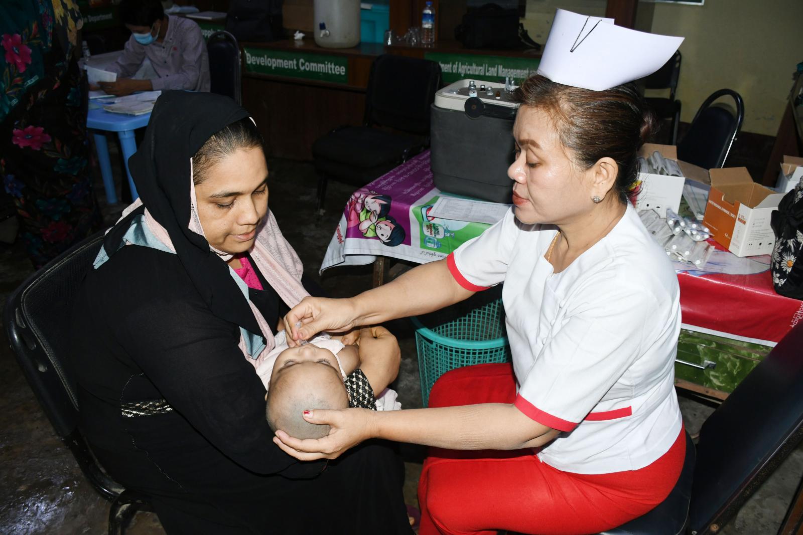 ရခိုင်ပြည်နယ်၊ မောင်တောမြို့၌ အသက်(၂)နှစ်အောက် ကလေးများနှင့် ကိုယ်ဝန်ဆောင် မိခင်များအား ပုံမှန်ကာကွယ်ဆေးထိုးနှံတိုက်ကျွေးခြင်းကို ယနေ့ နံနက် ၉ နာရီအချိန် မိခင်နှင့်ကလေးစောင့်ရှောက်ရေးအသင်းအဖွဲ့ရုံးနှင့် သတ်မှတ်စုရပ်နေရာတို့တွင် ကျန်းမာရေးဝန်ထမ်းများက ထိုးနှံပေးလျက်ရှိကြသည်။